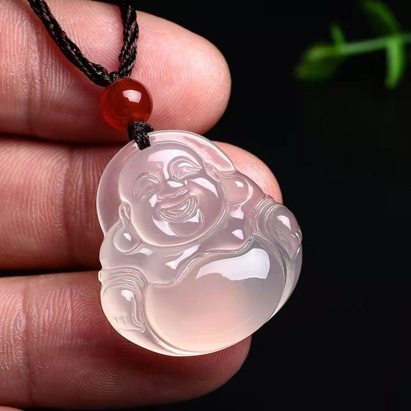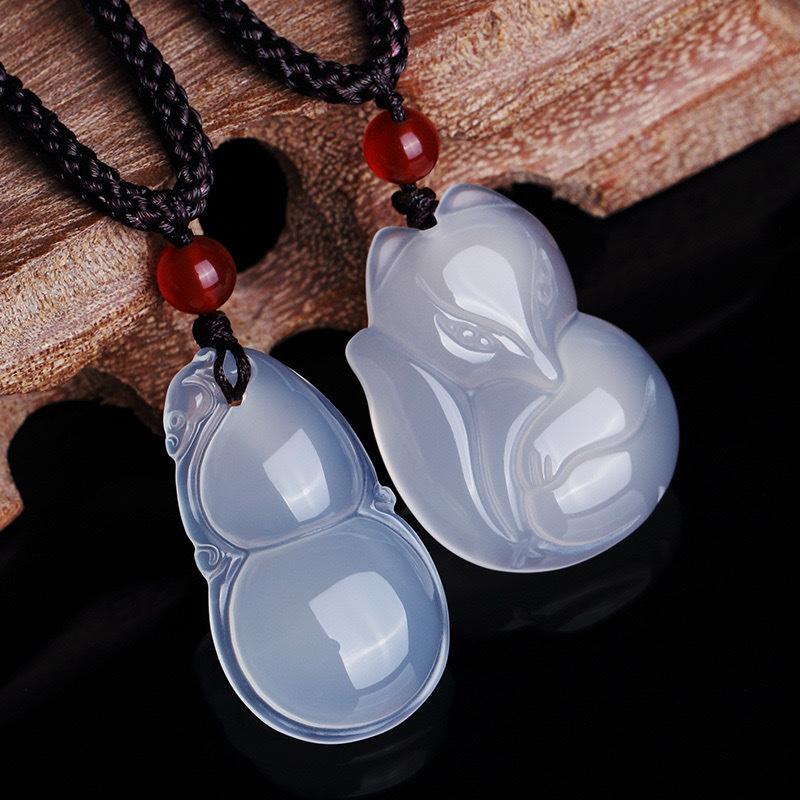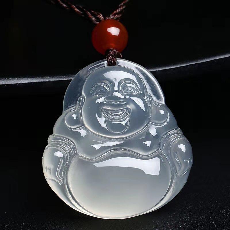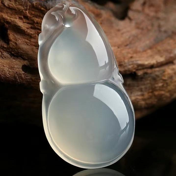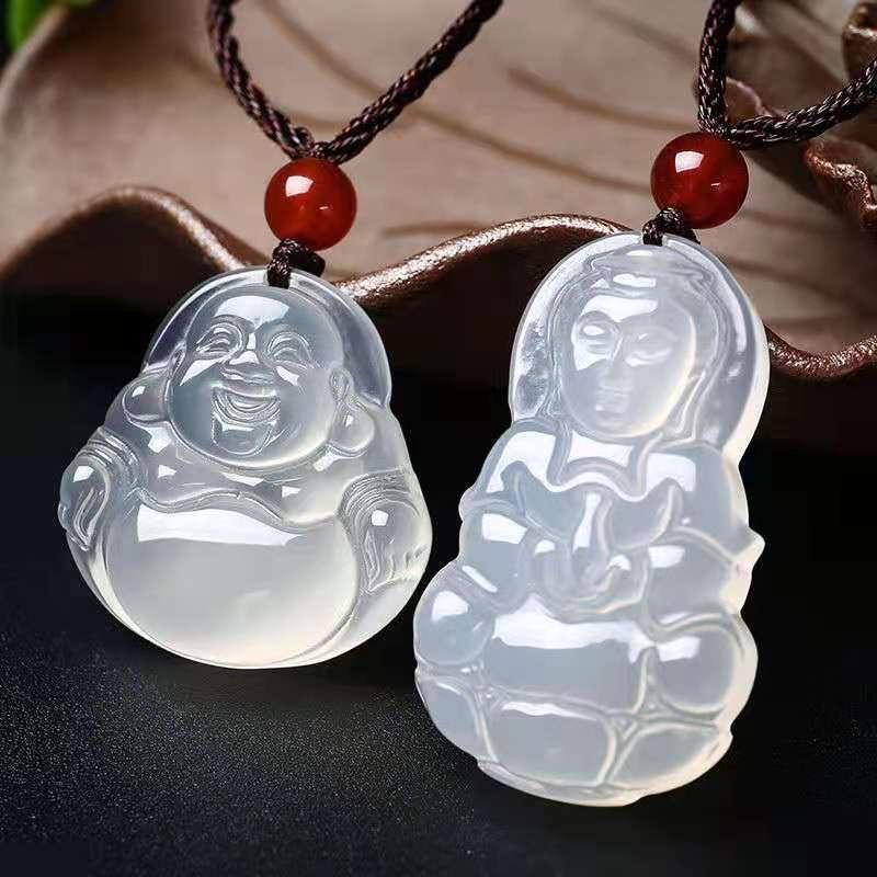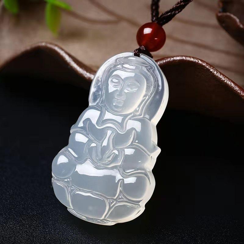 Colgante de calcedonia blanca hielo natural, colgante de calabaza de Buda Guanyin, collar de jade para hombres y mujeres, colgante de pareja