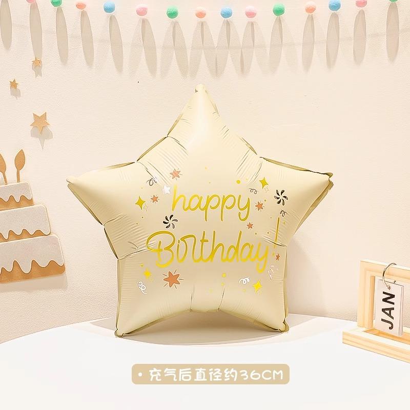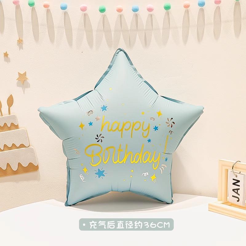 Globo de película de aluminio con forma de estrella de cinco puntas, diseño de escena de fiesta de cumpleaños, color retro mate, venta al por mayor