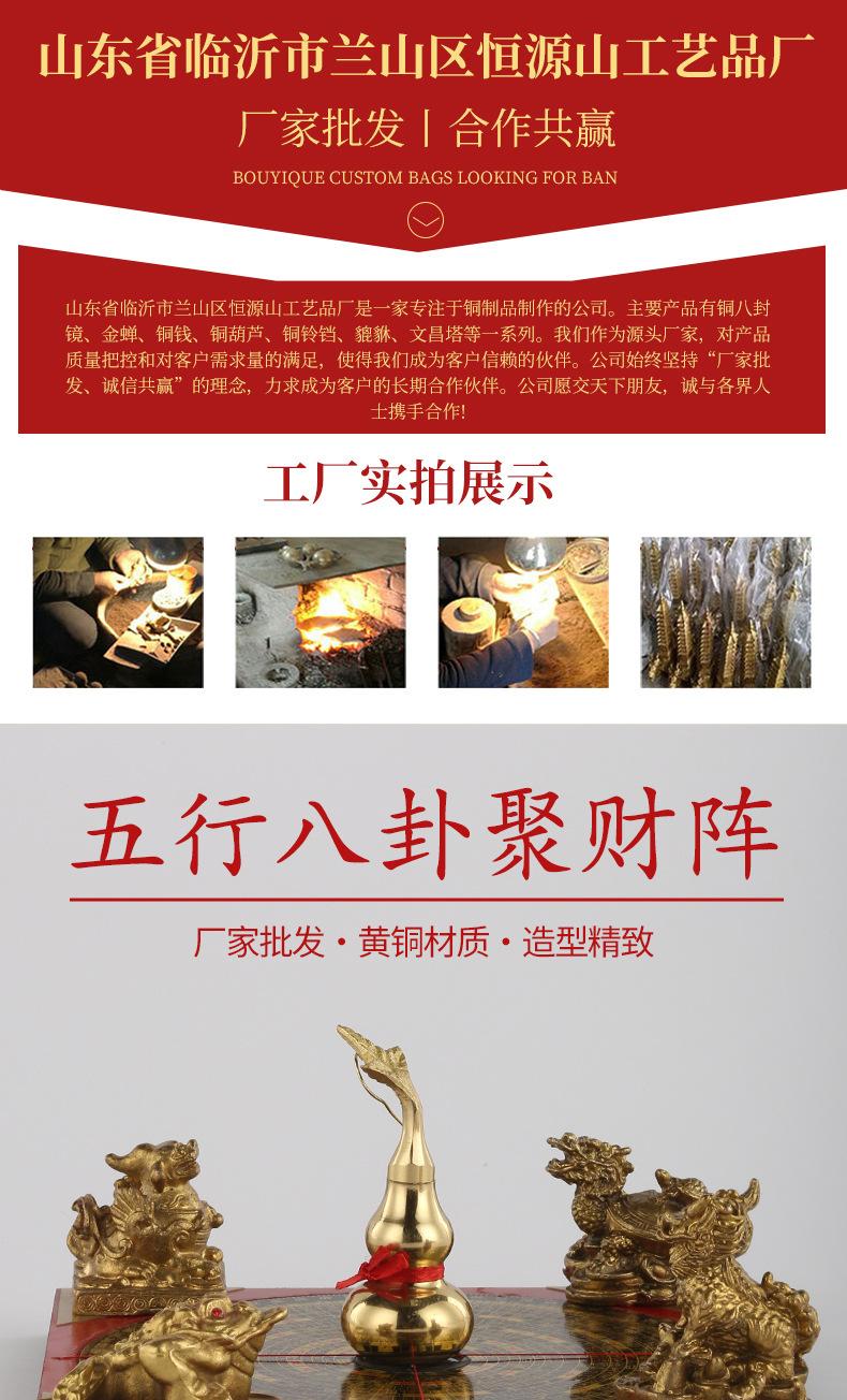 Venta al por mayor de fábrica de adornos de latón con forma de cinco tesoros, calabaza de cobre, dragón, tortuga, brújula Kirin, decoración del hogar