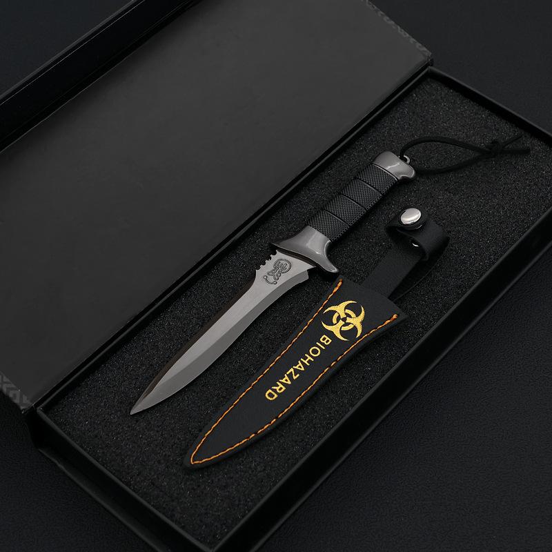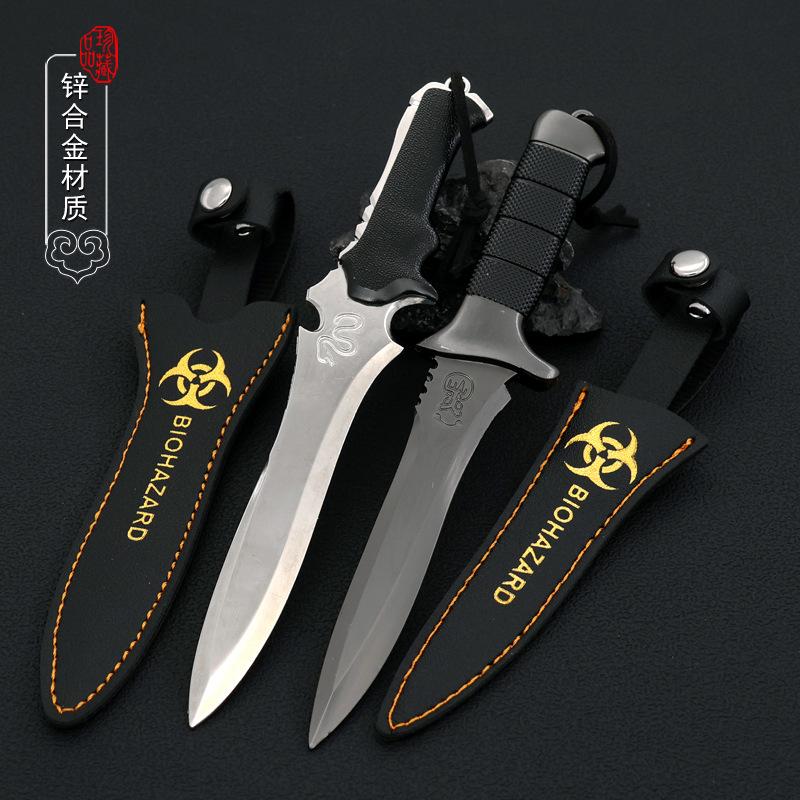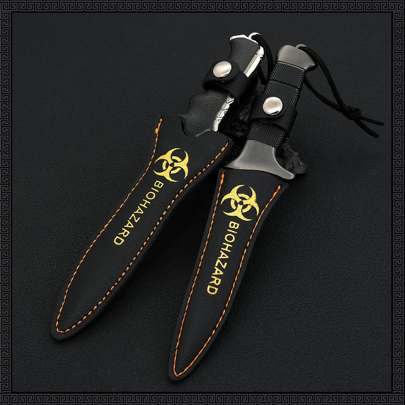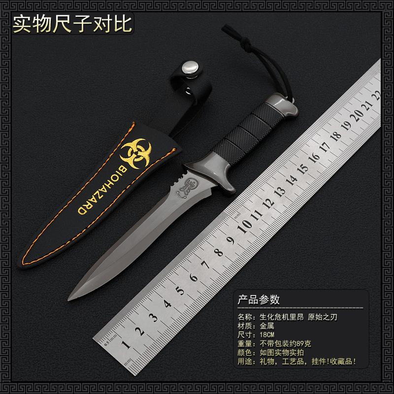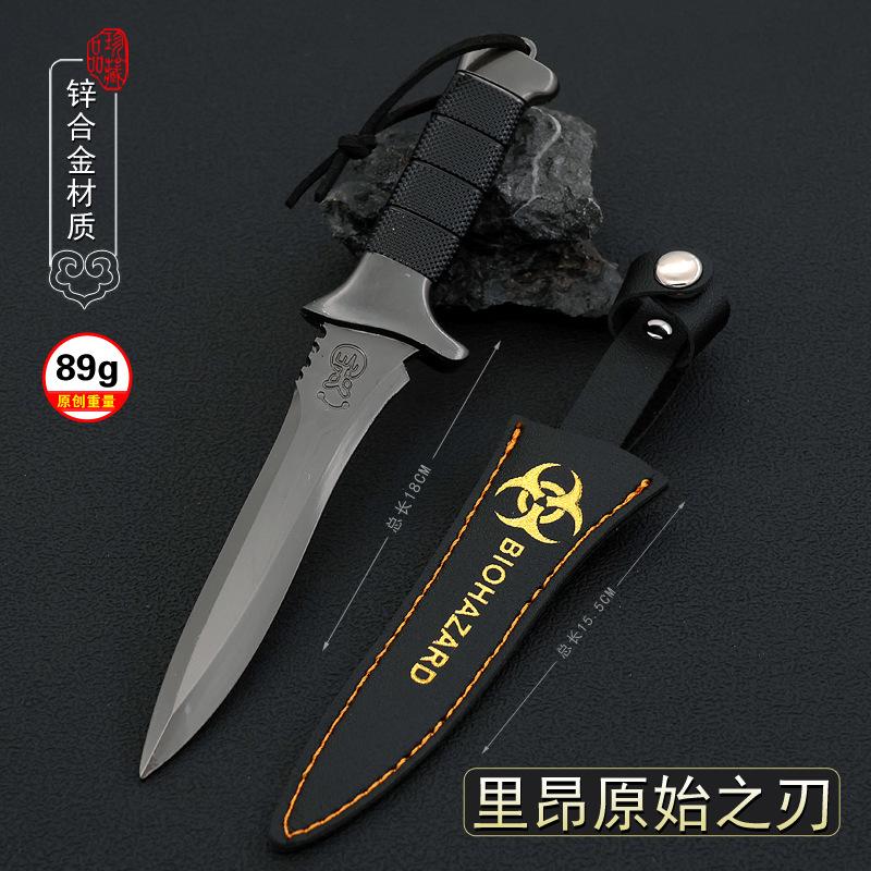 En torno al juego de la crisis bioquímica, la versión del estuche de cuero del modelo de arma de hoja original de Li Ang, adornos artesanales totalmente metálicos