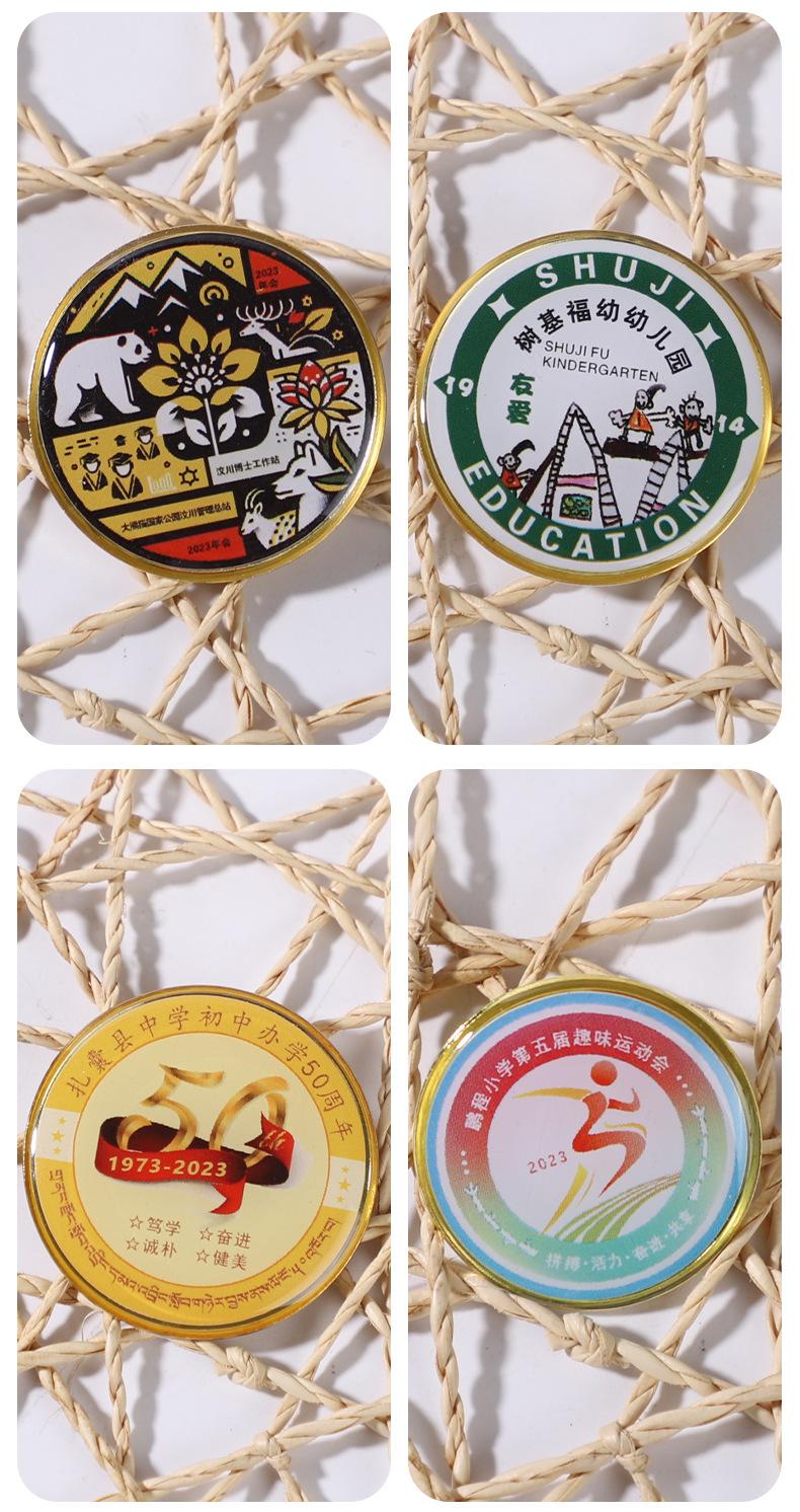 Insignia de metal con impresión a color, insignia de epoxi, insignia escolar, insignia de esmalte, medalla conmemorativa, personalización de logotipo