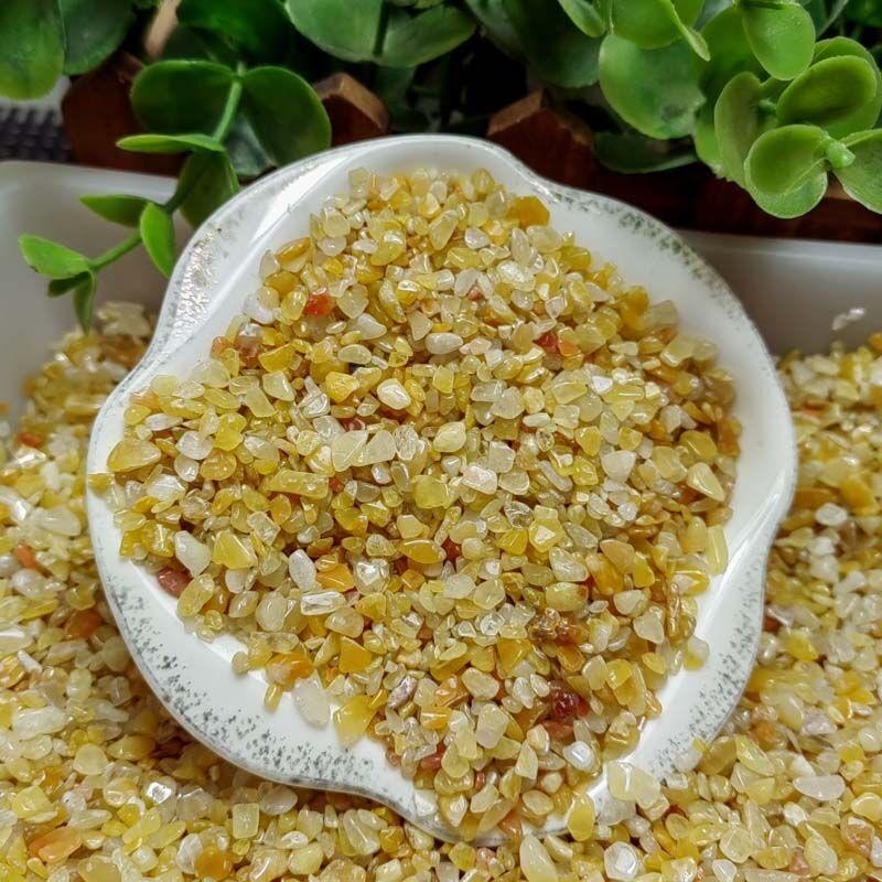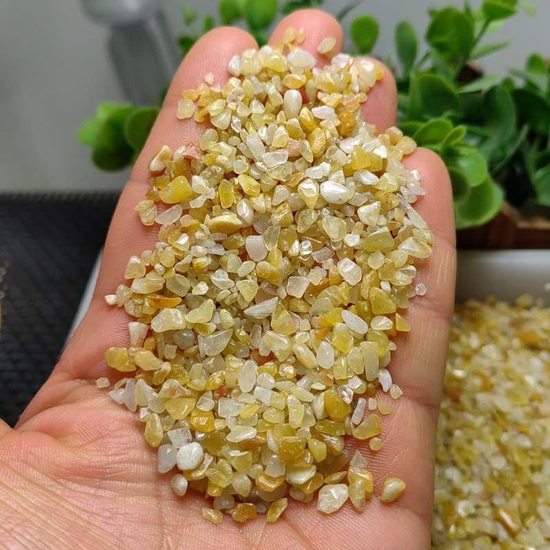 Tamaño: Longitud de partícula individual aprox.3~5 mm5~7mm y 7~9mm, una pieza significa 100g, diez piezas significan 1kg, no importa cuánto compre, todo se empaca en una bolsa. Un vaso de agua desechable puede contener unos 350g. No hay límite en la cantidad que compre, bienvenido a comprar al por mayor. Adecuado para cultivar flores, piedras para acuario, piedras para bonsái, etc. Venta al por mayor de piedras trituradas de jade de seda dorada, materiales triturados amorfos de jade dorado.