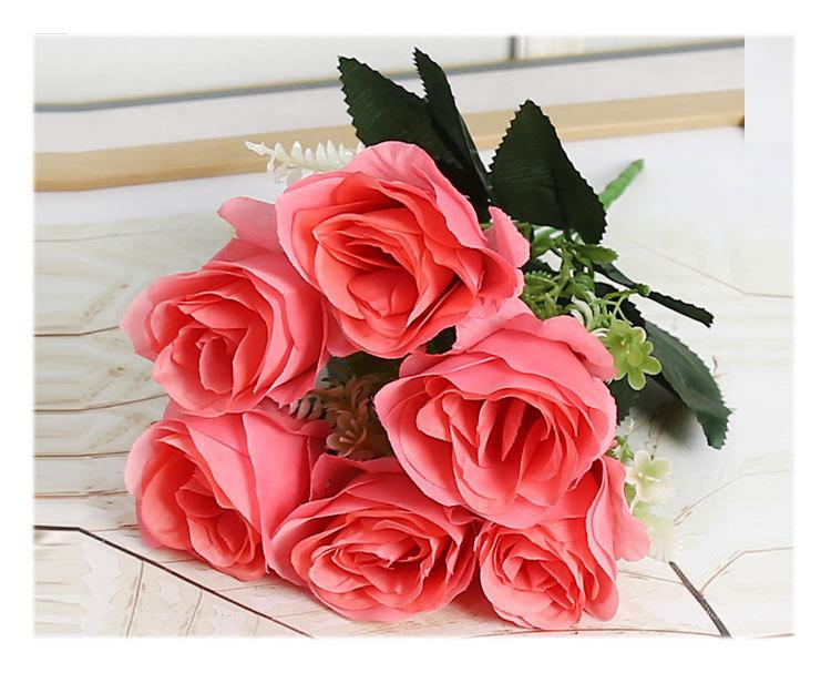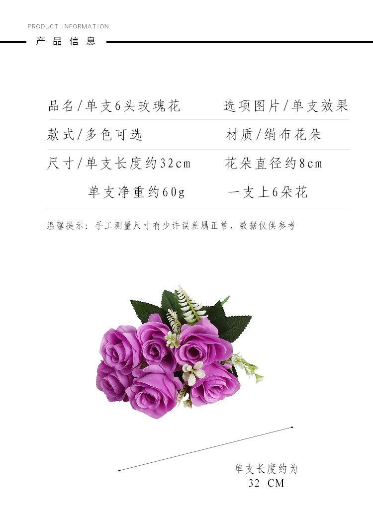 Compra Rosa artificial de 6 tenedores y 6 cabezas, flor falsa para decoración del hogar, accesorios de fotografía para bodas, flores decorativas de alta gama. al por mayor en Joom.pro