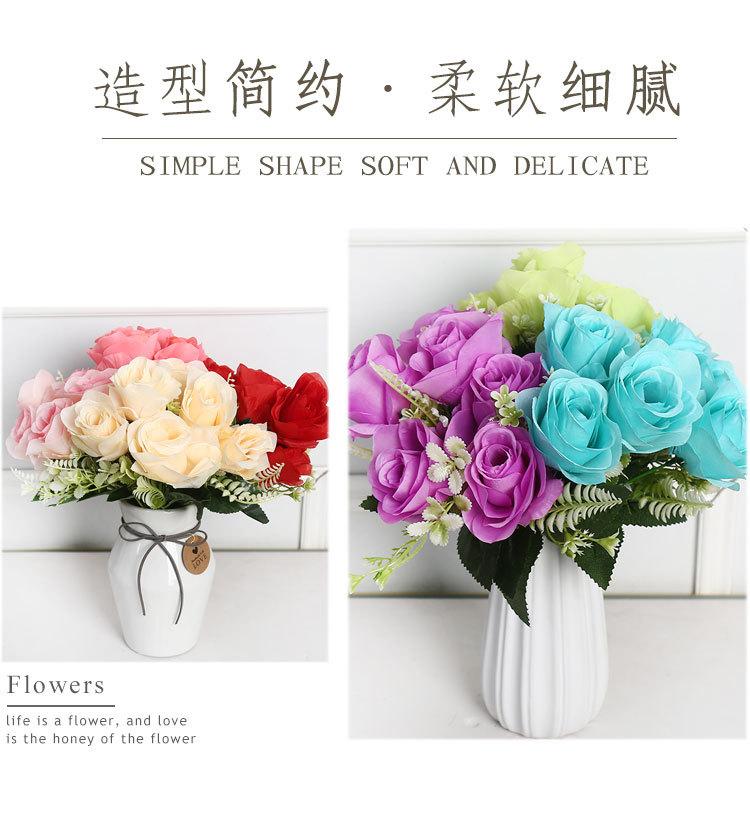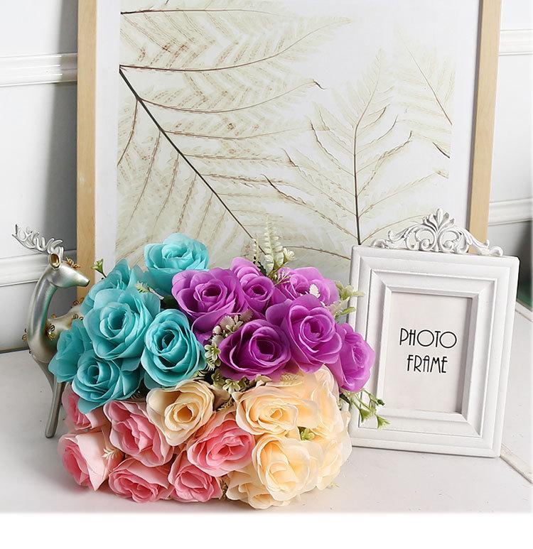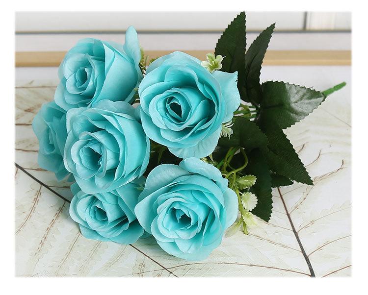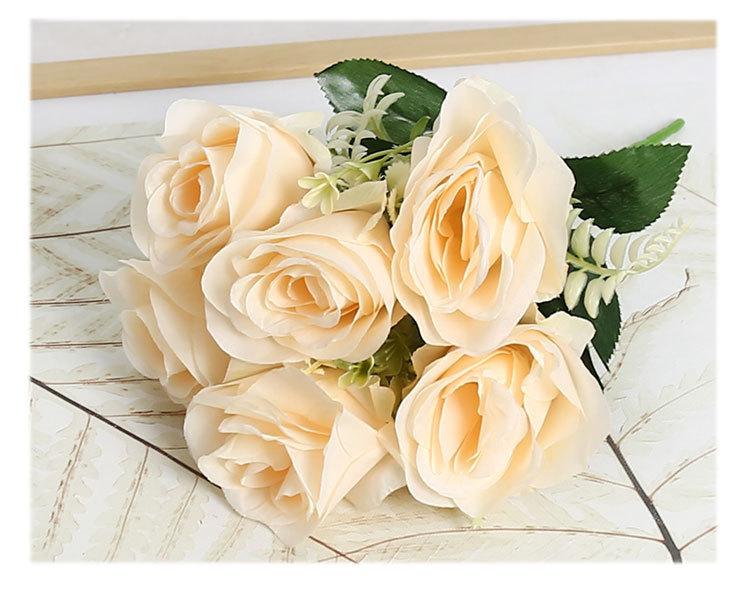 Rosa artificial de 6 tenedores y 6 cabezas, flor falsa para decoración del hogar, accesorios de fotografía para bodas, flores decorativas de alta gama.