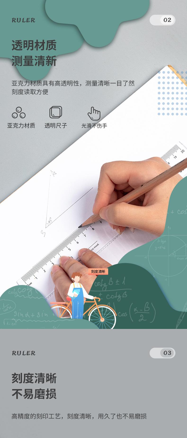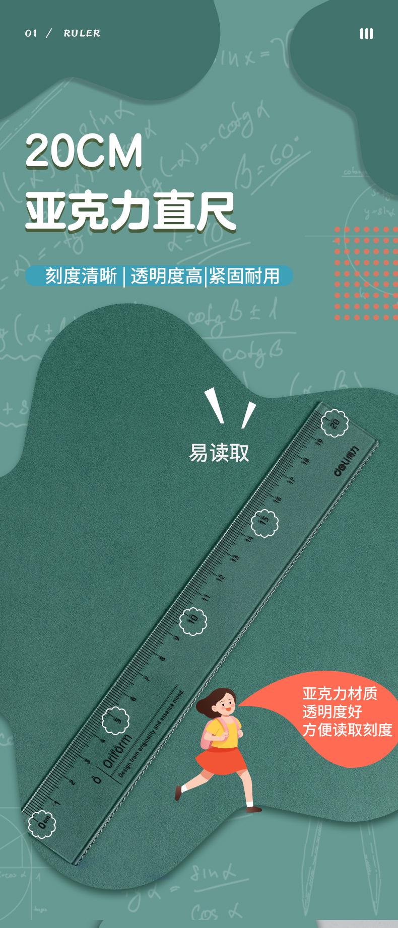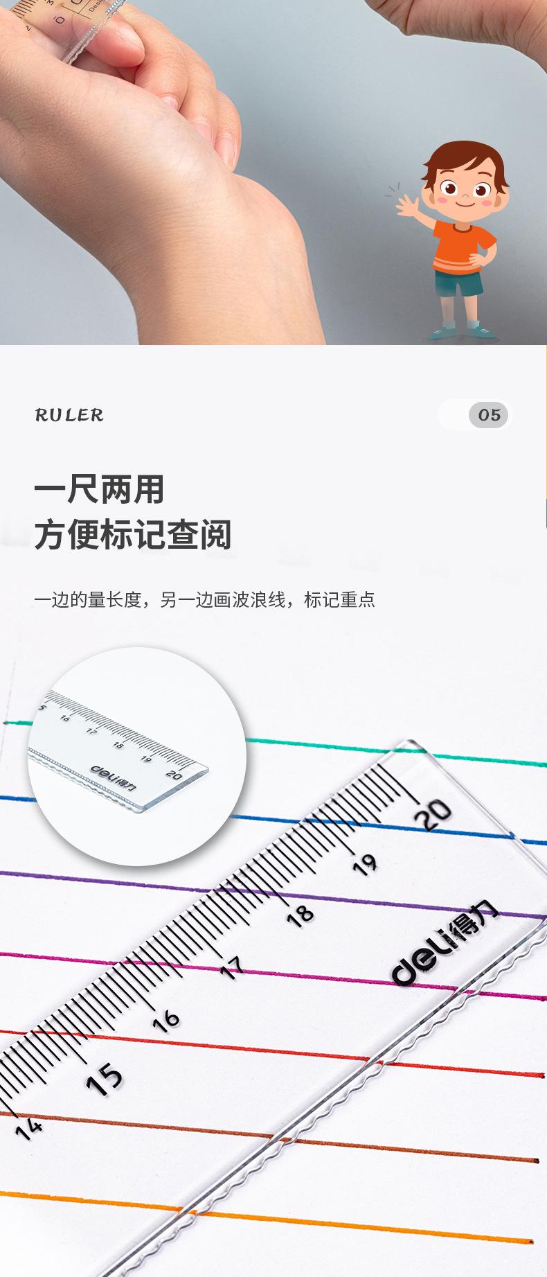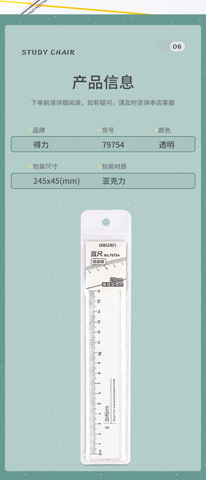 Regla acrílica Deli 79754 de 20 cm, transparente, especial para estudiantes, para medir con alta permeabilidad, para pruebas de dibujo.