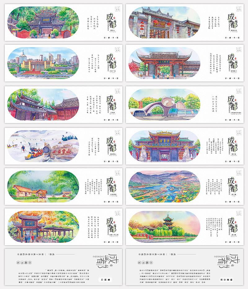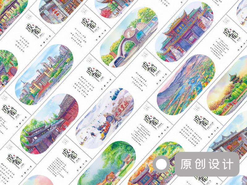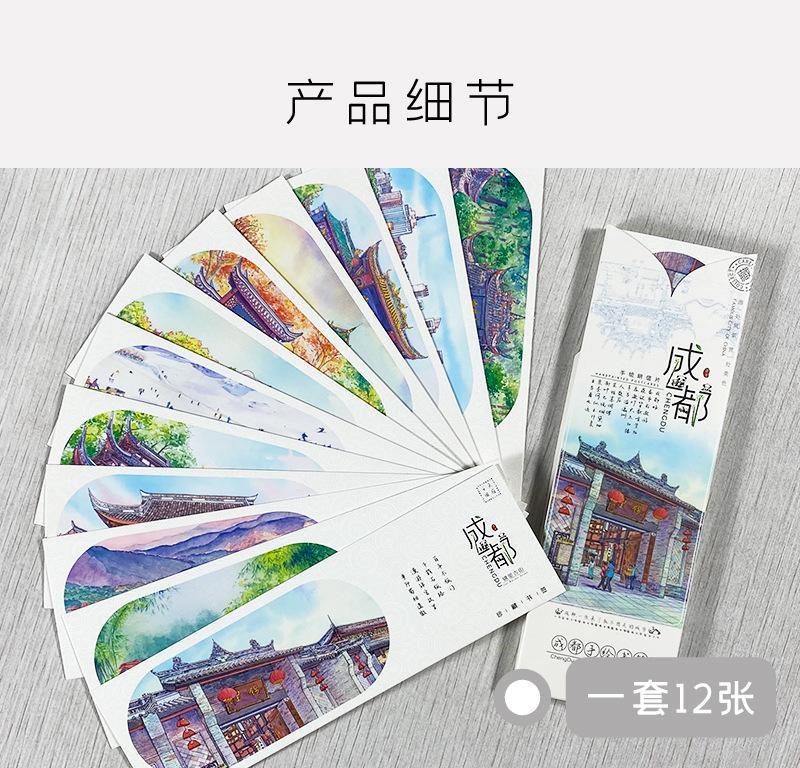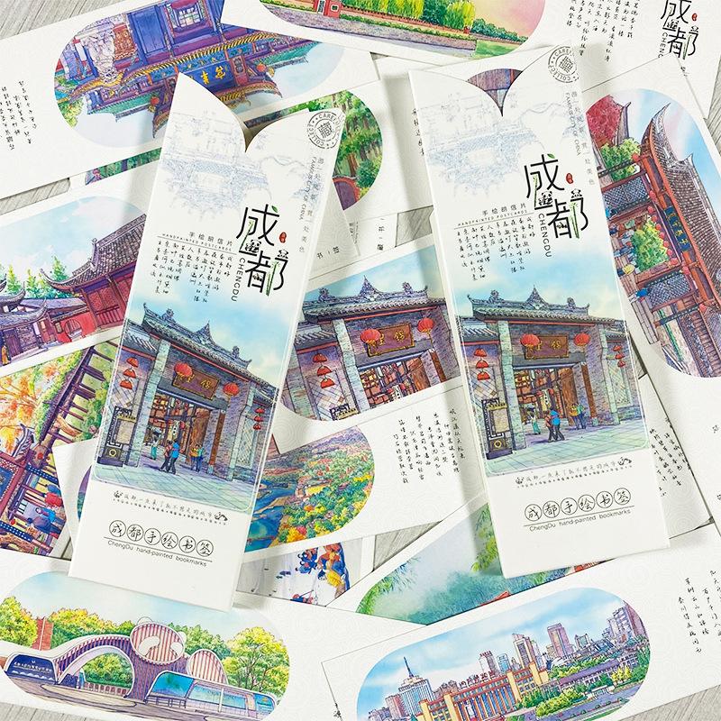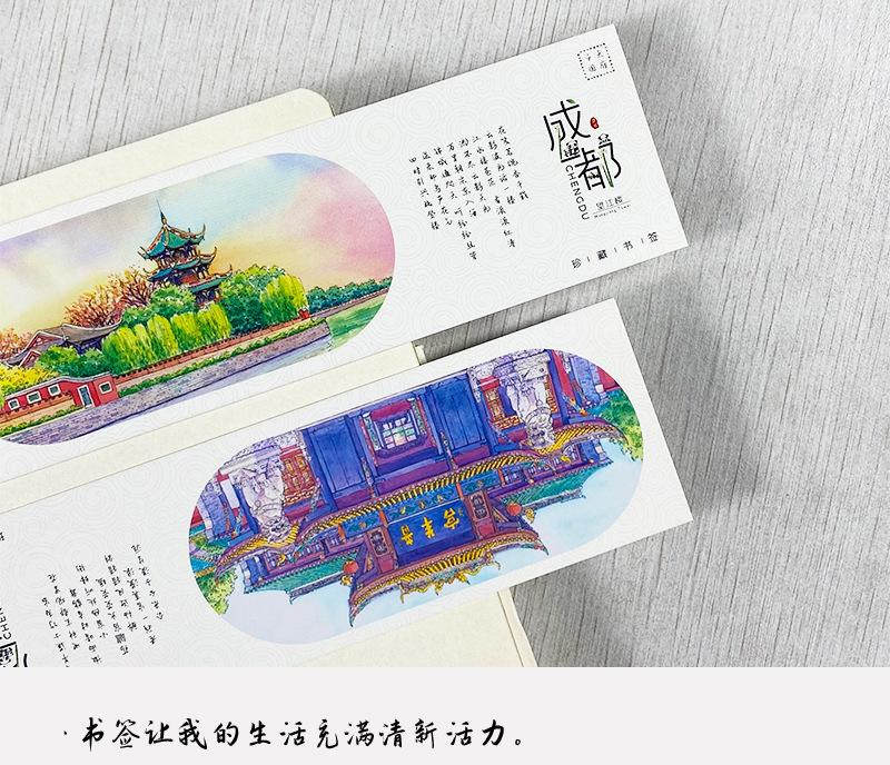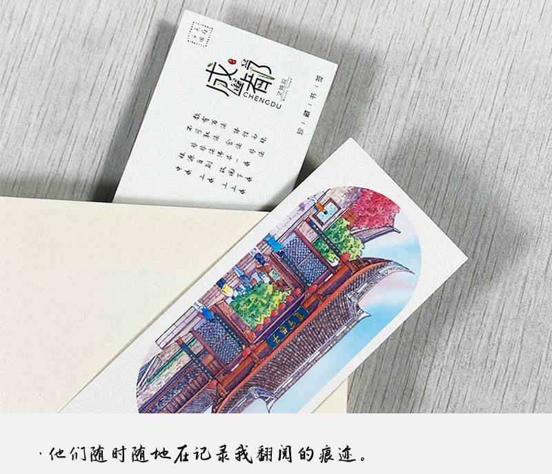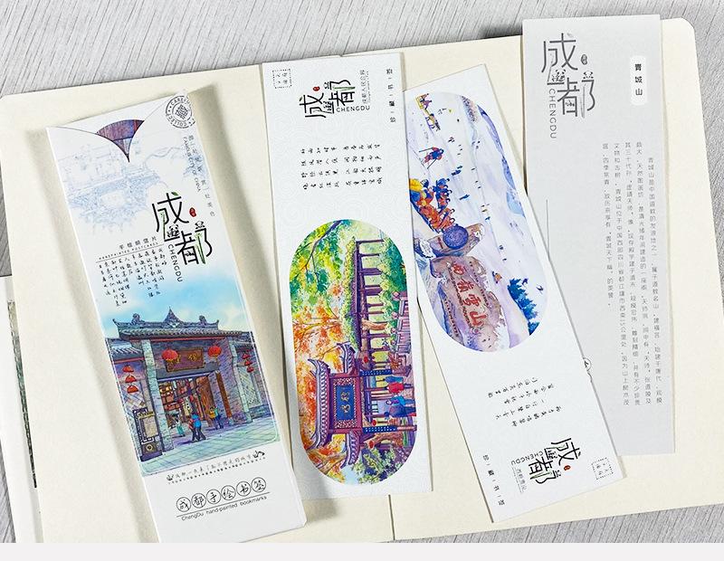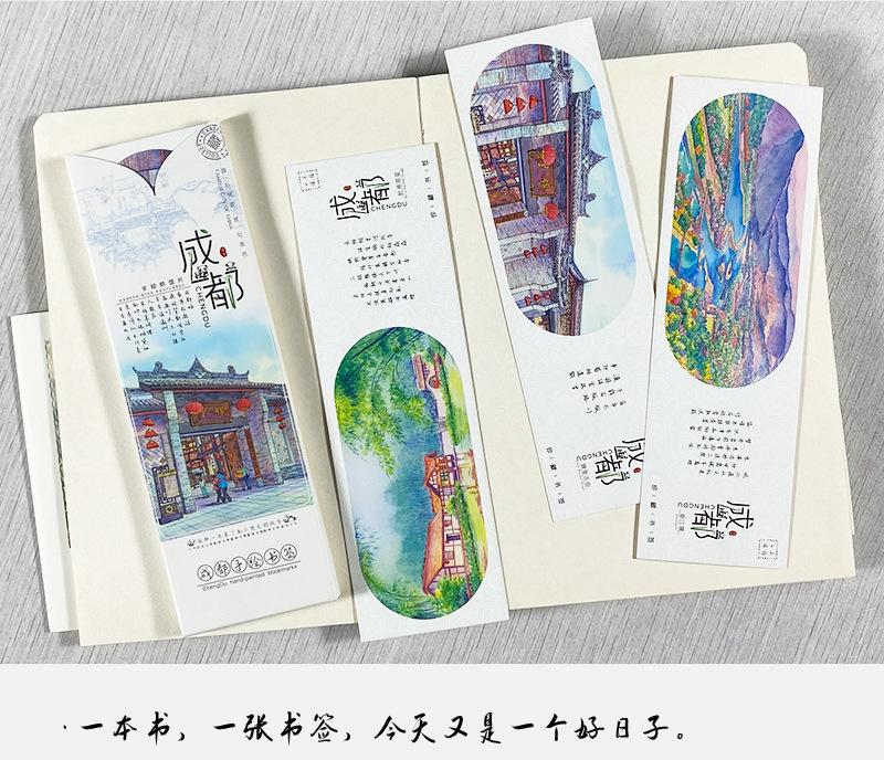 Marcapáginas de paisaje pintado a mano creativo de papel Jinli de Sichuan y Chengdu de Lu Yao Wenchuang, artesanía de viaje, regalo conmemorativo creativo cultural