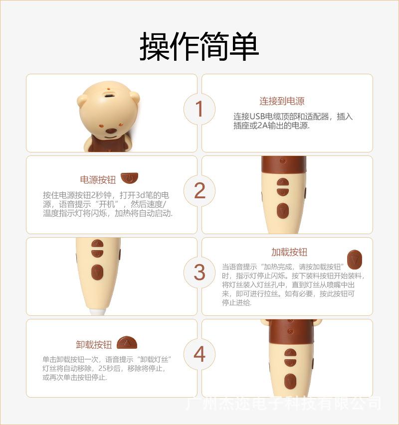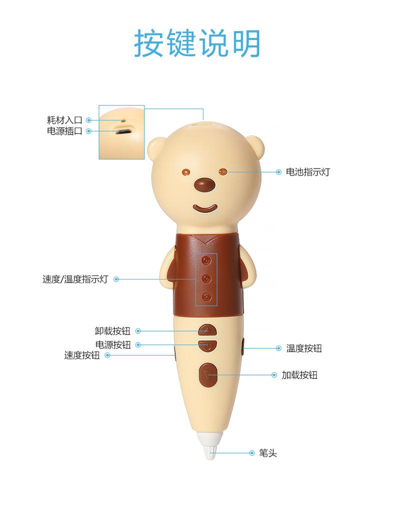 Comercio Electrónico Transfronterizo Juguete Navideño Micro USB con Forma de Dibujo Animado Función de Voz Lápiz de Impresión 3D de Baja Temperatura