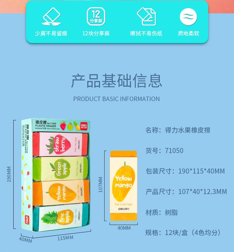 Deli 71050 Borrador grande de fruta fresca Borrador grande Los estudiantes de primaria limpian sin dejar marcas