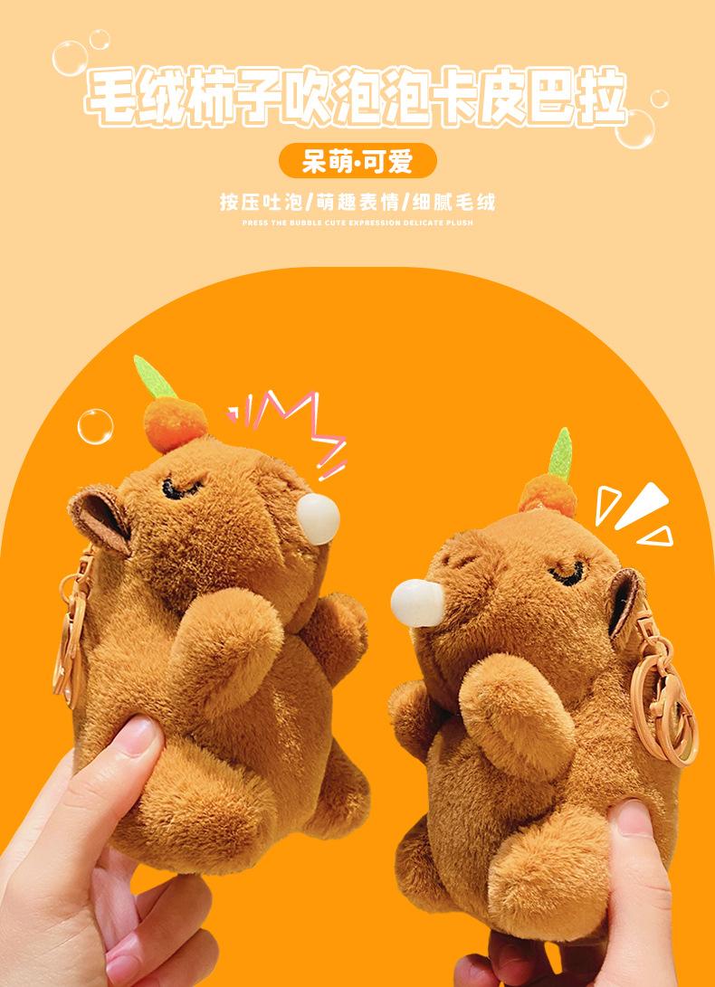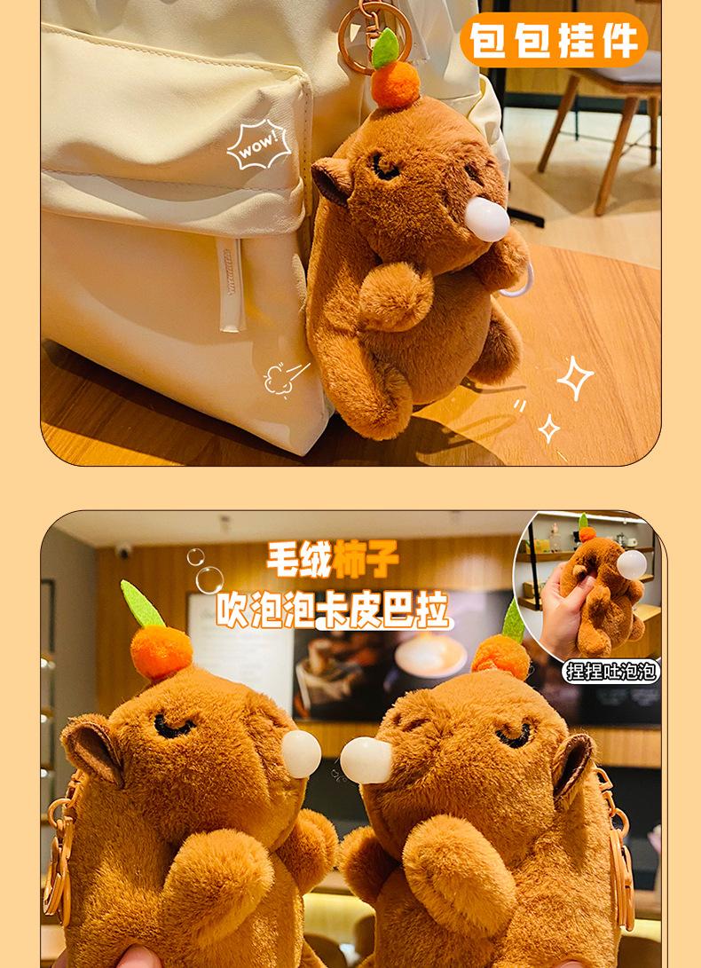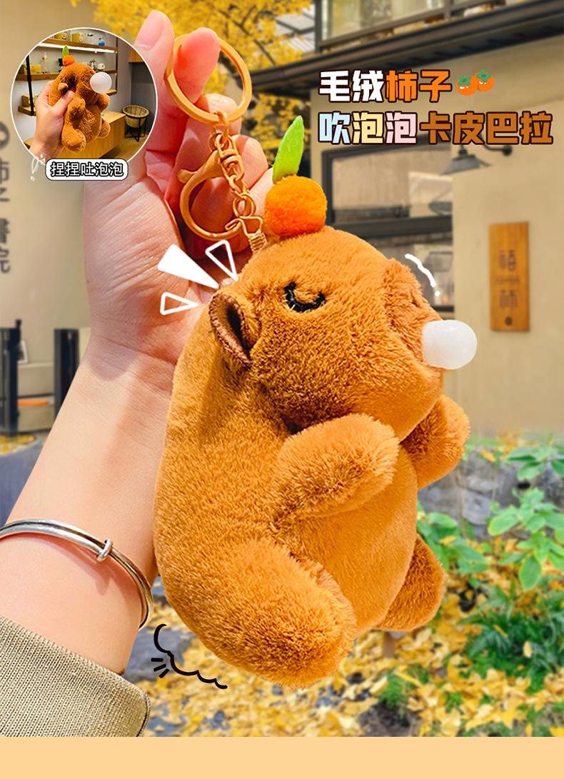 Llavero con colgante de coche de capabala con burbujas de caqui de peluche de dibujos animados para pareja, regalo pequeño al por mayor