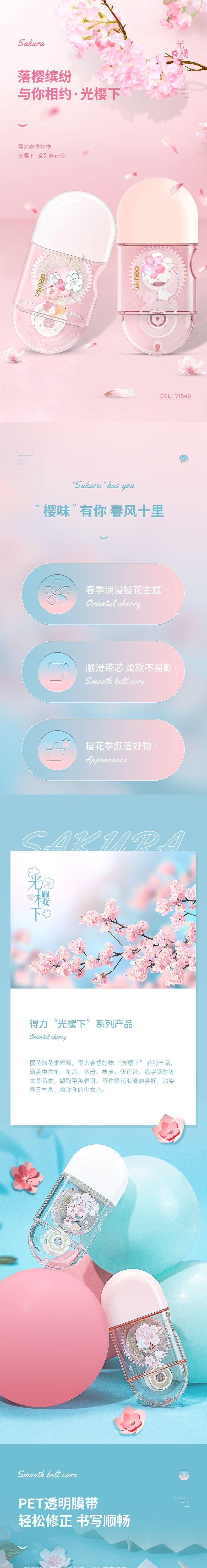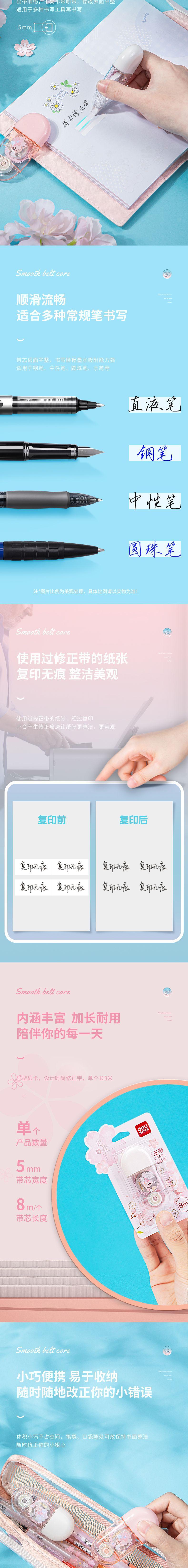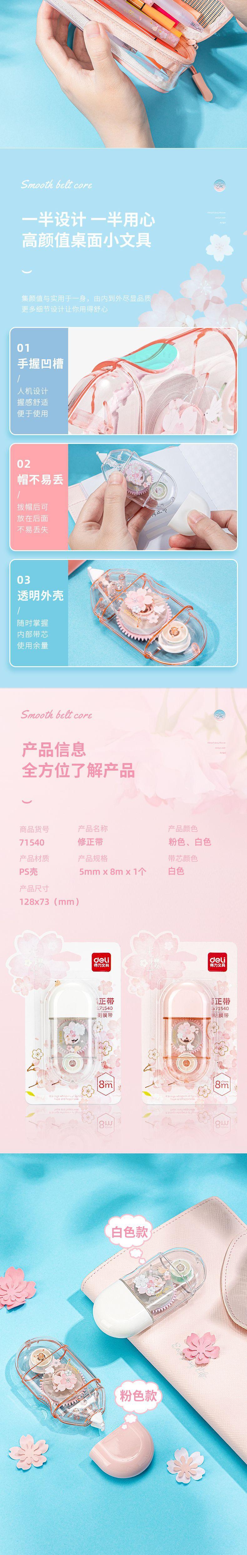 Deli 71540 Cinta correctora serie Flor de Cerezo cinta correctora portátil 8 m cinta correctora gran capacidad cinta correctora para estudiantes