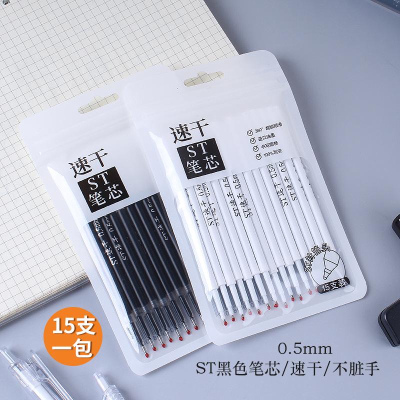Recambio de tinta ST de alta calidad en bolsa, 0,5 ml, de secado rápido, neutro, para estudiantes de primaria, fácil de limpiar, color azul cristal, negro carbón.