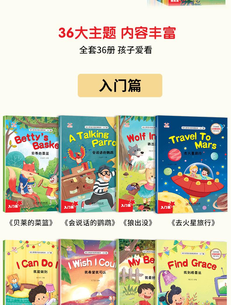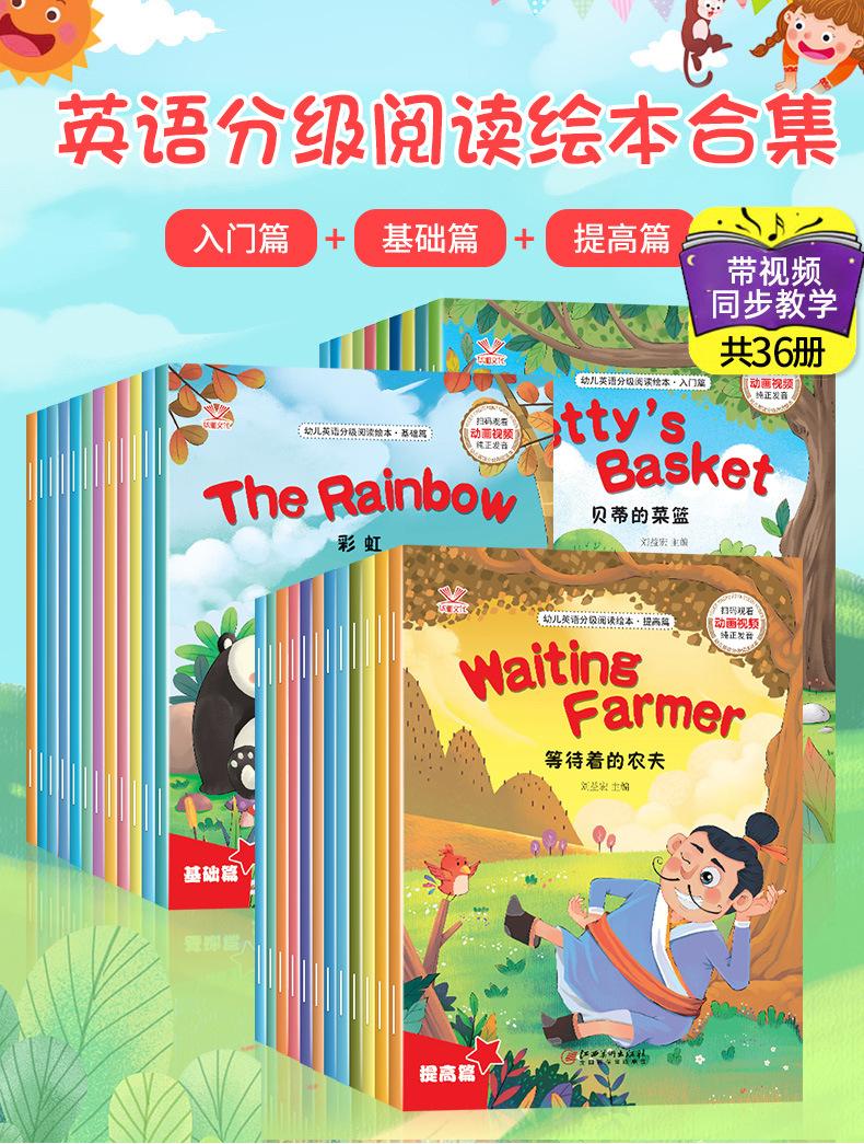 Lectura Graduada en Inglés para Niños Introducción a la Mejora Básica Audio y Video de Apoyo Lectura Libros Ilustrados para Niños, 36 Volúmenes en Total