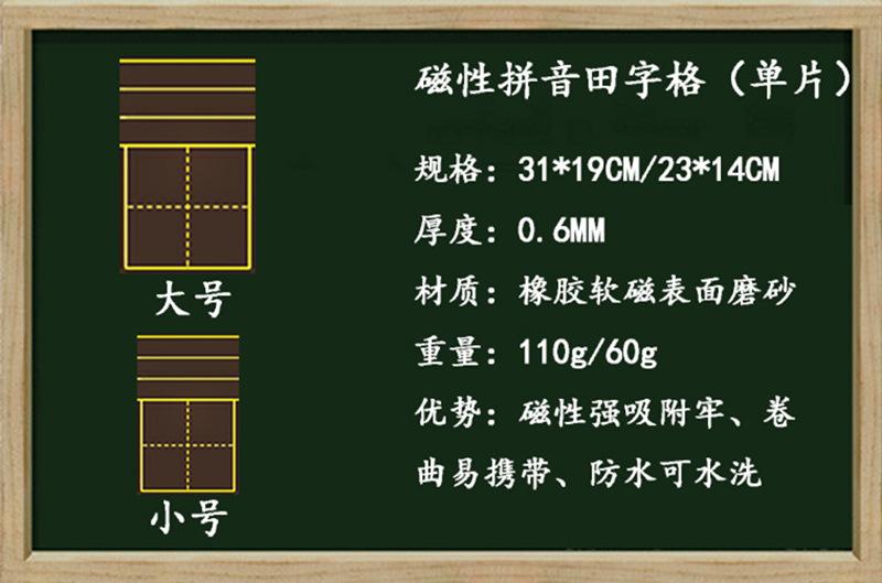 Calcomanía de pizarra cuadriculada de campo magnético pequeño, pieza única, cuatro líneas, tres cuadrículas, pizarra de campo pinyin, calcomanía magnética engrosada