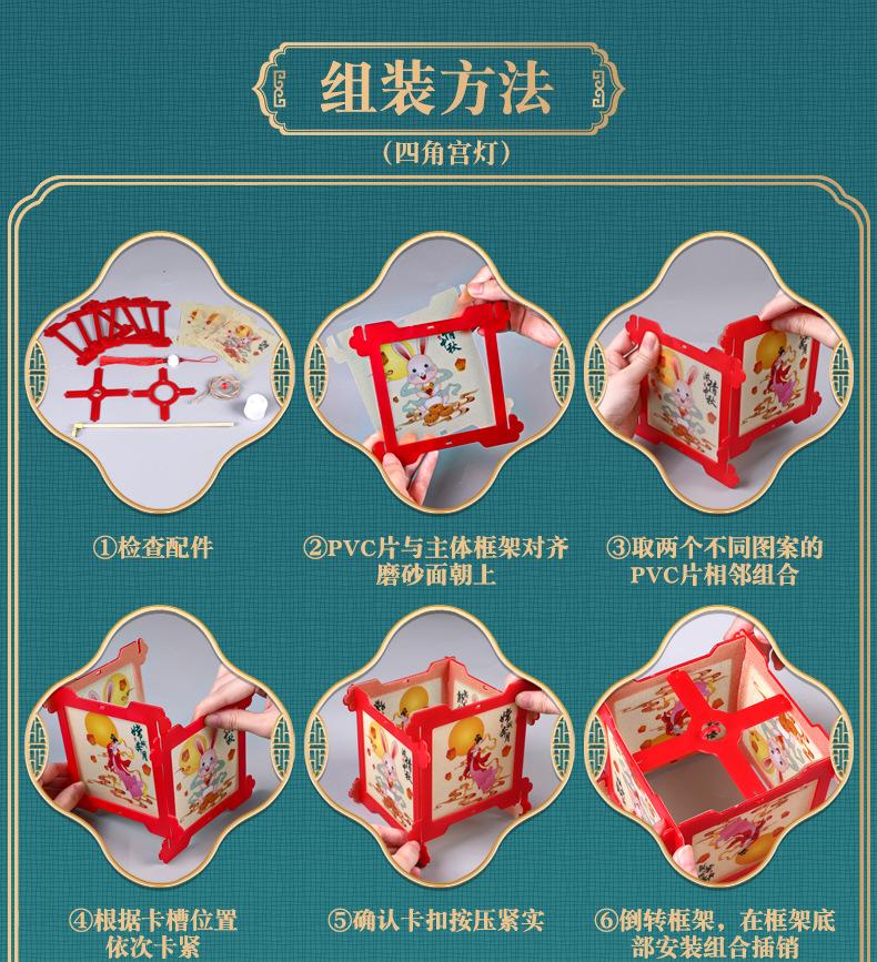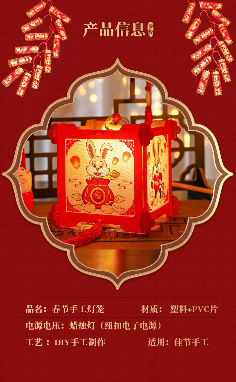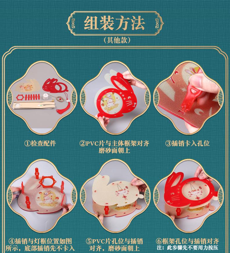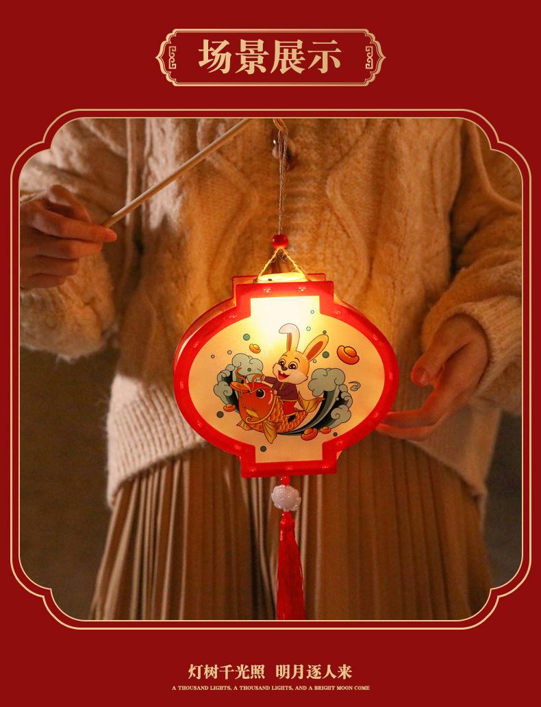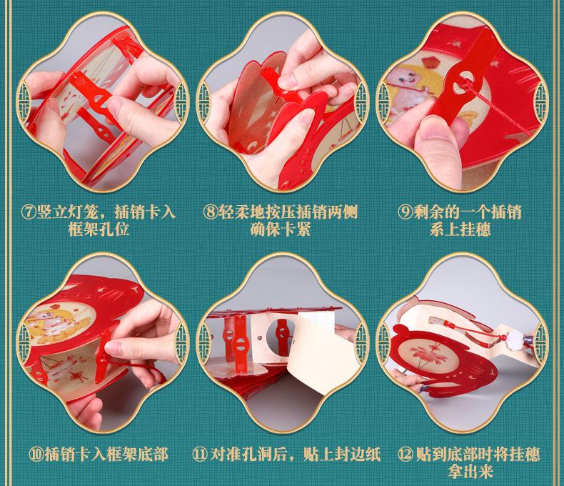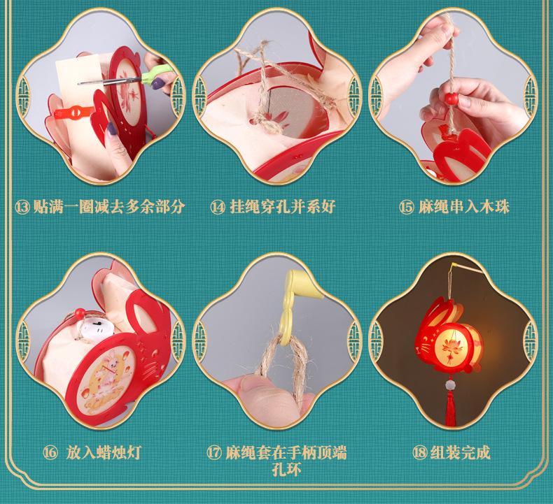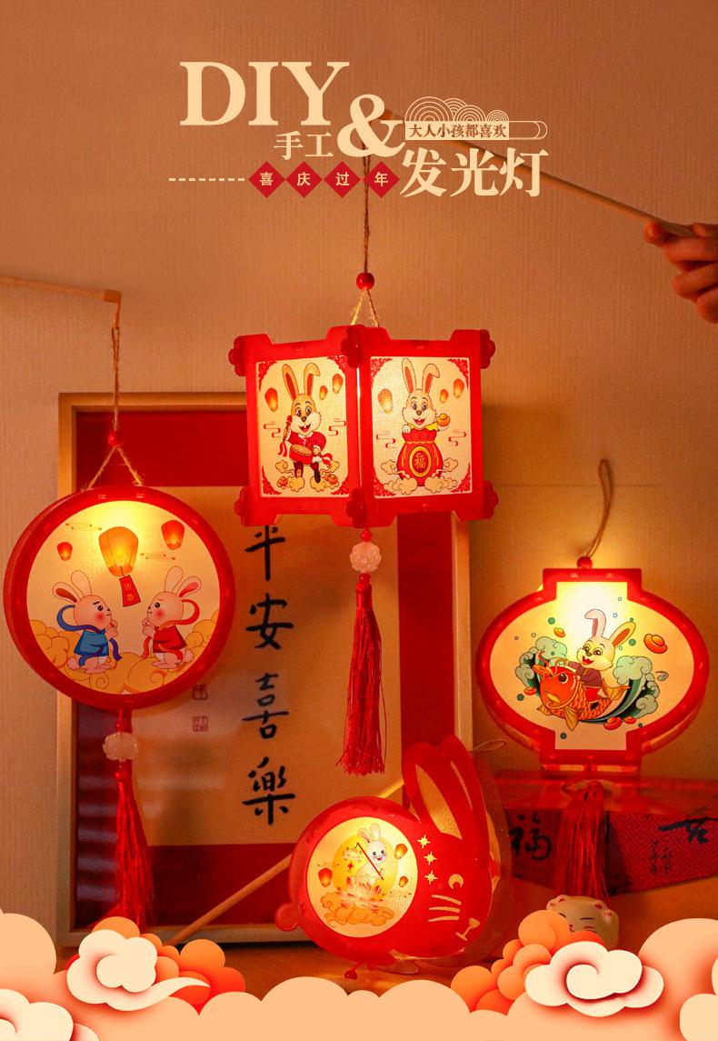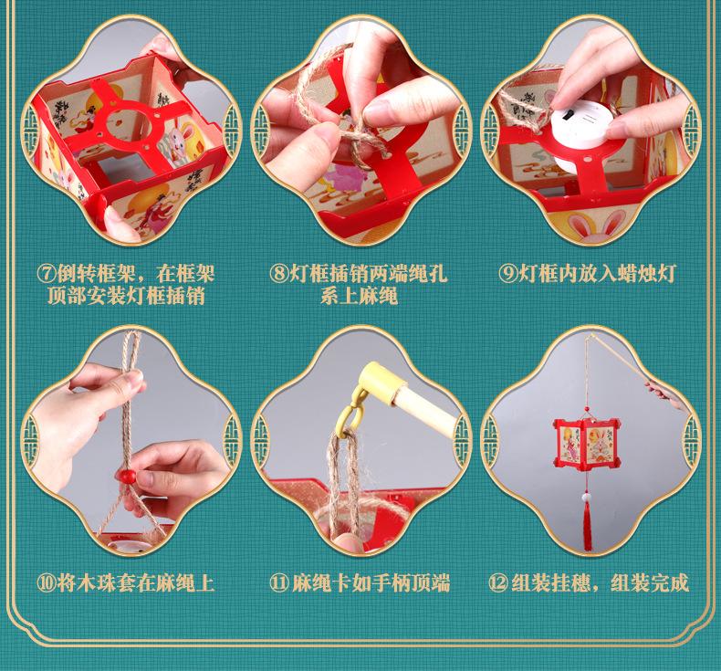 Linterna decorativa del Festival del Medio Otoño, linterna portátil antigua, paquete de material de bricolaje, lámpara de conejo luminosa, lámpara de juguete hecha a mano