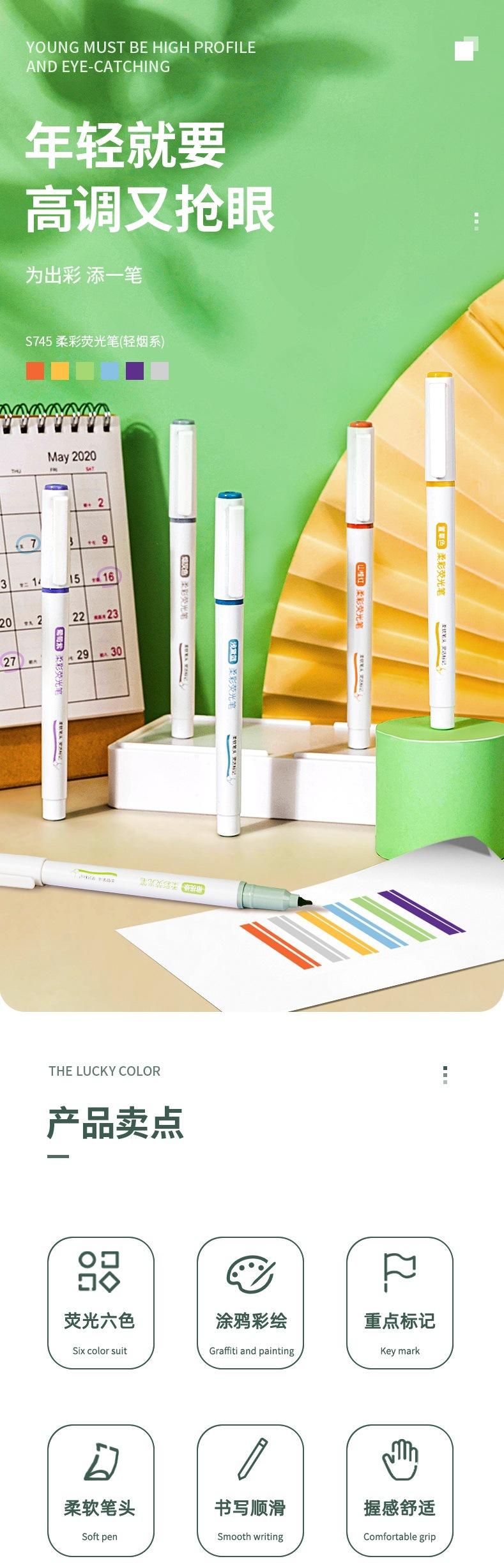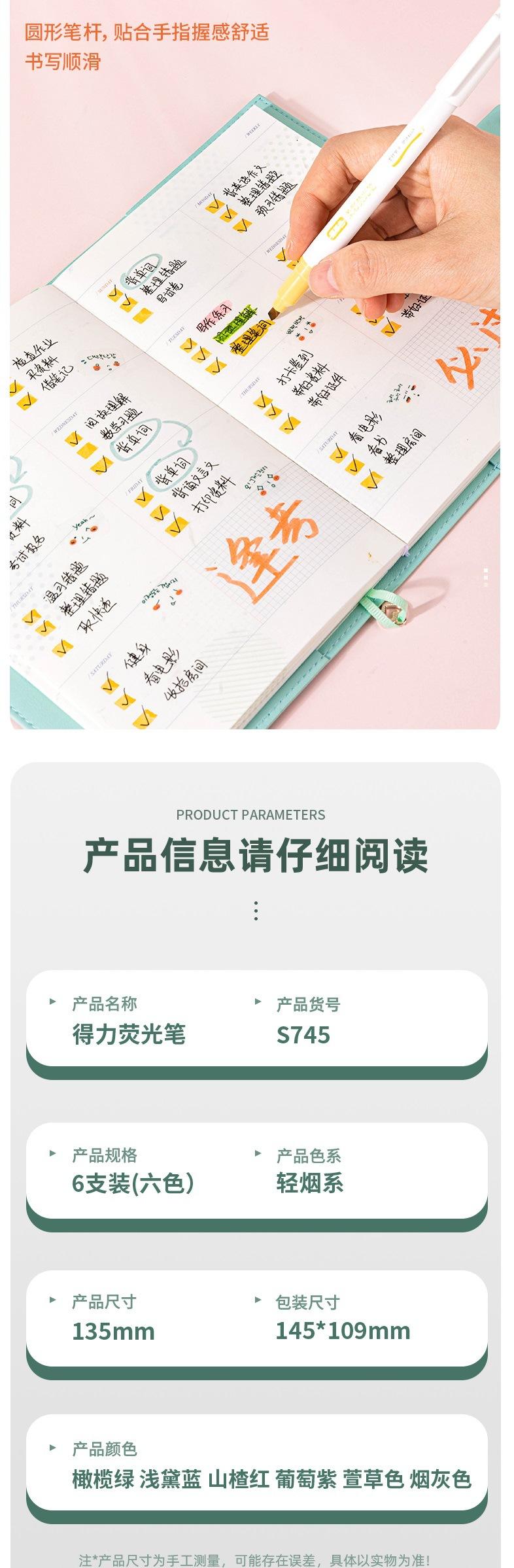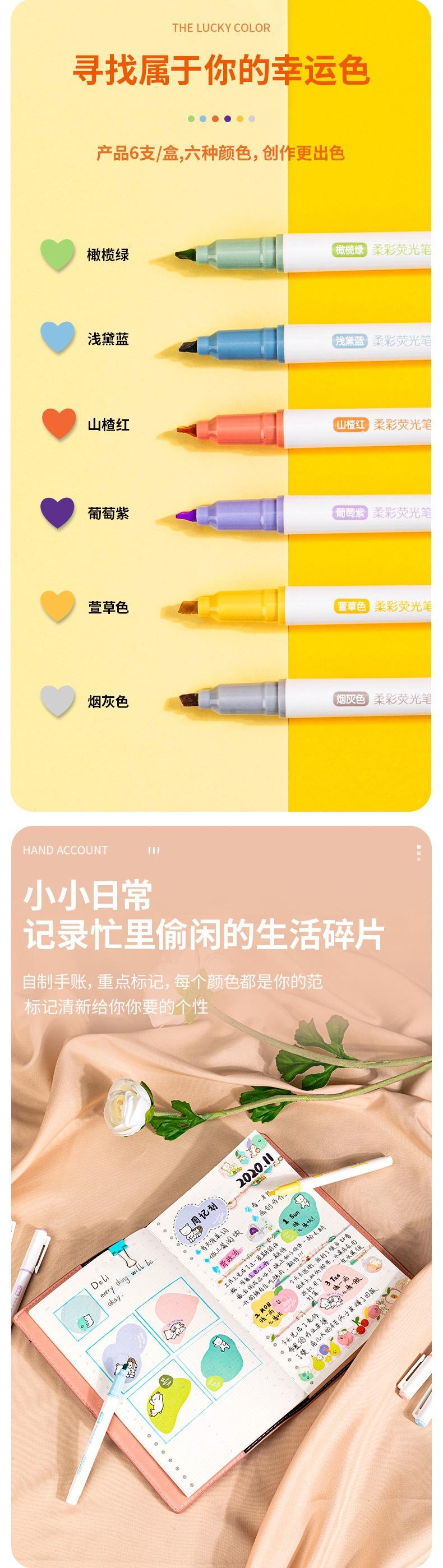 Resaltador de doble punta color suave Deli S745 Macaron pluma suave clara rotulador pluma para graffiti llamativo 6 Piezas