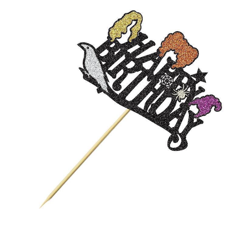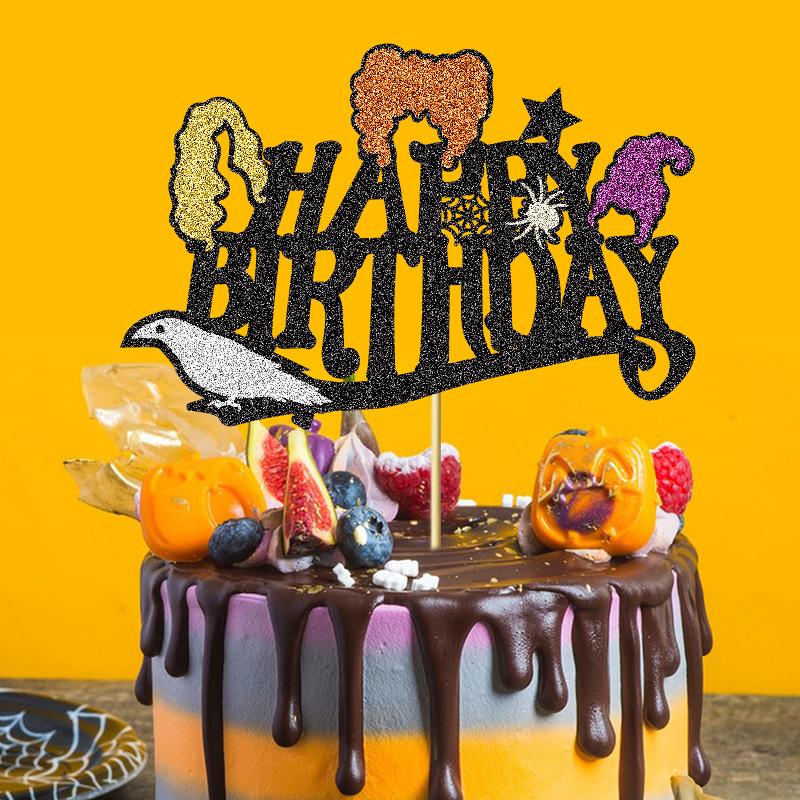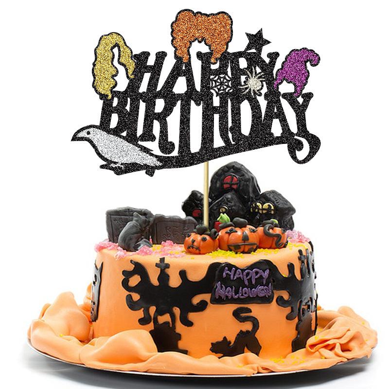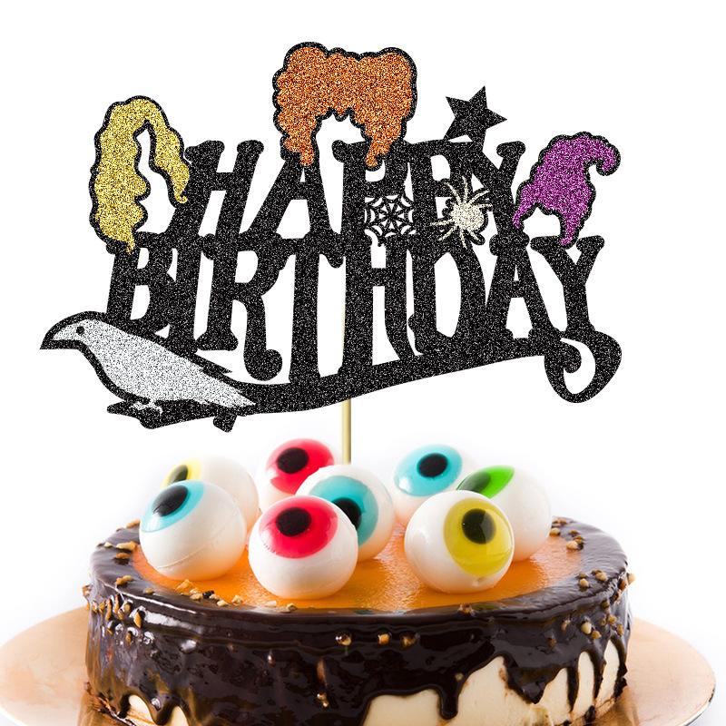 Compra Decoración de fiesta con temática loca de bruja de Halloween, cabello de bruja, araña, cuervo, tarjeta de pastel de feliz cumpleaños, inserción al por mayor en Joom.pro