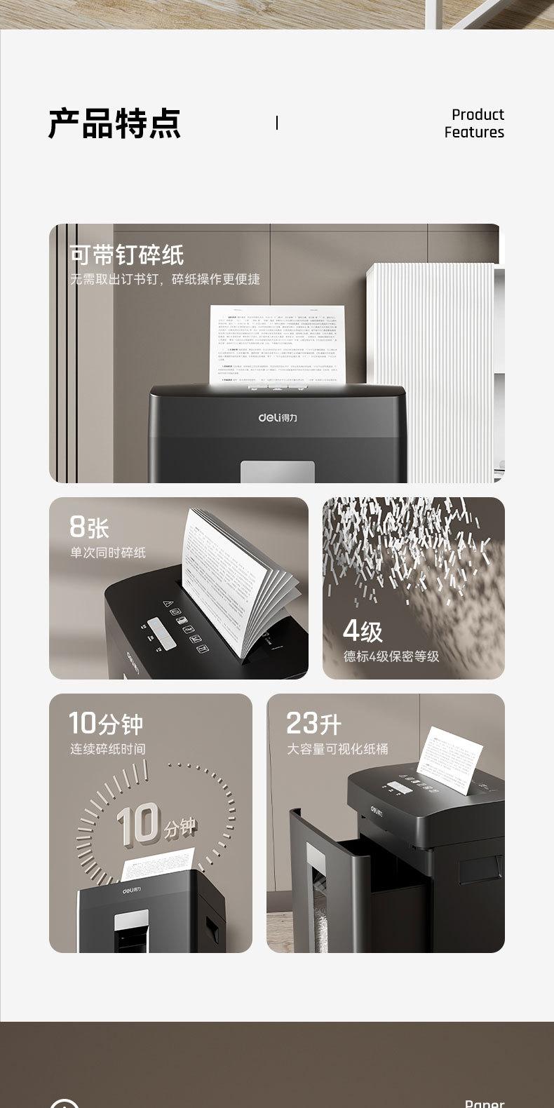 Destructora de papel Deli GA390, pequeña, silenciosa, para uso en oficinas y empresas, mini trituradora de documentos eléctrica doméstica.