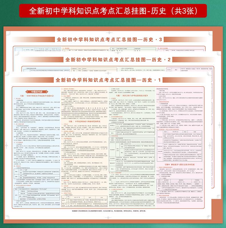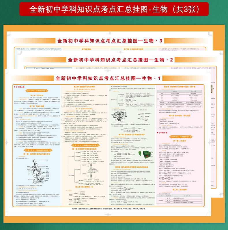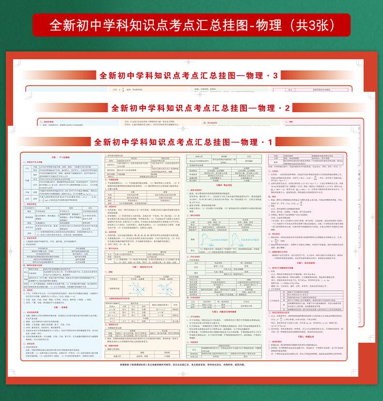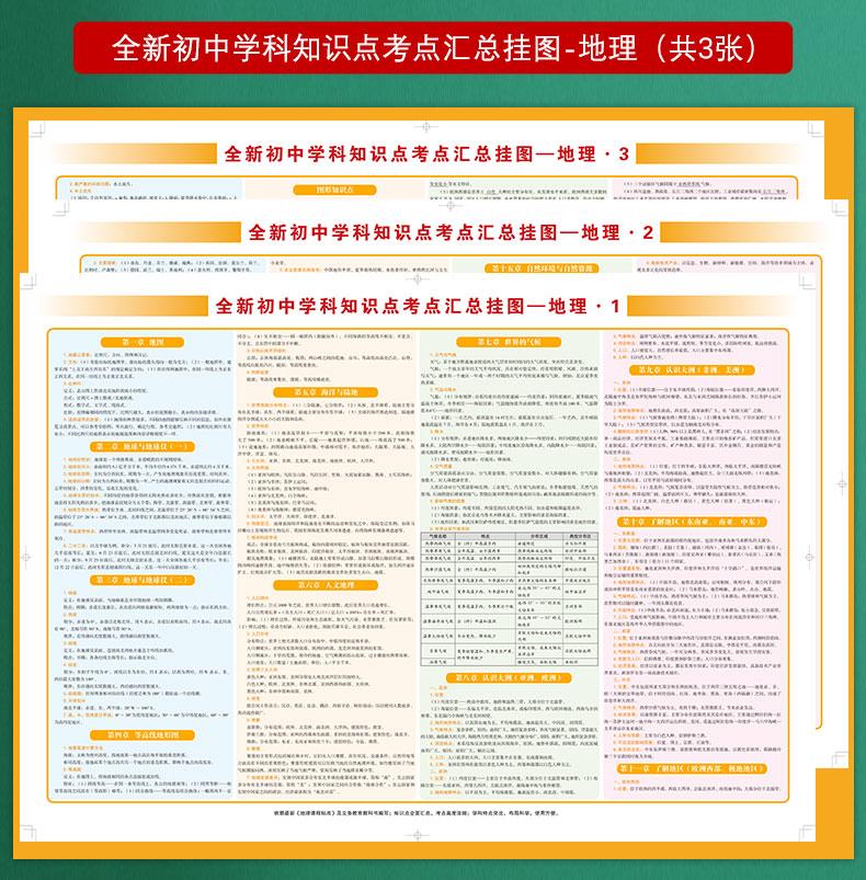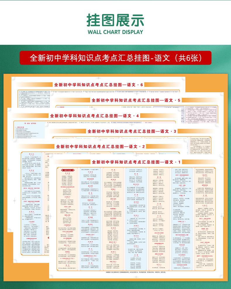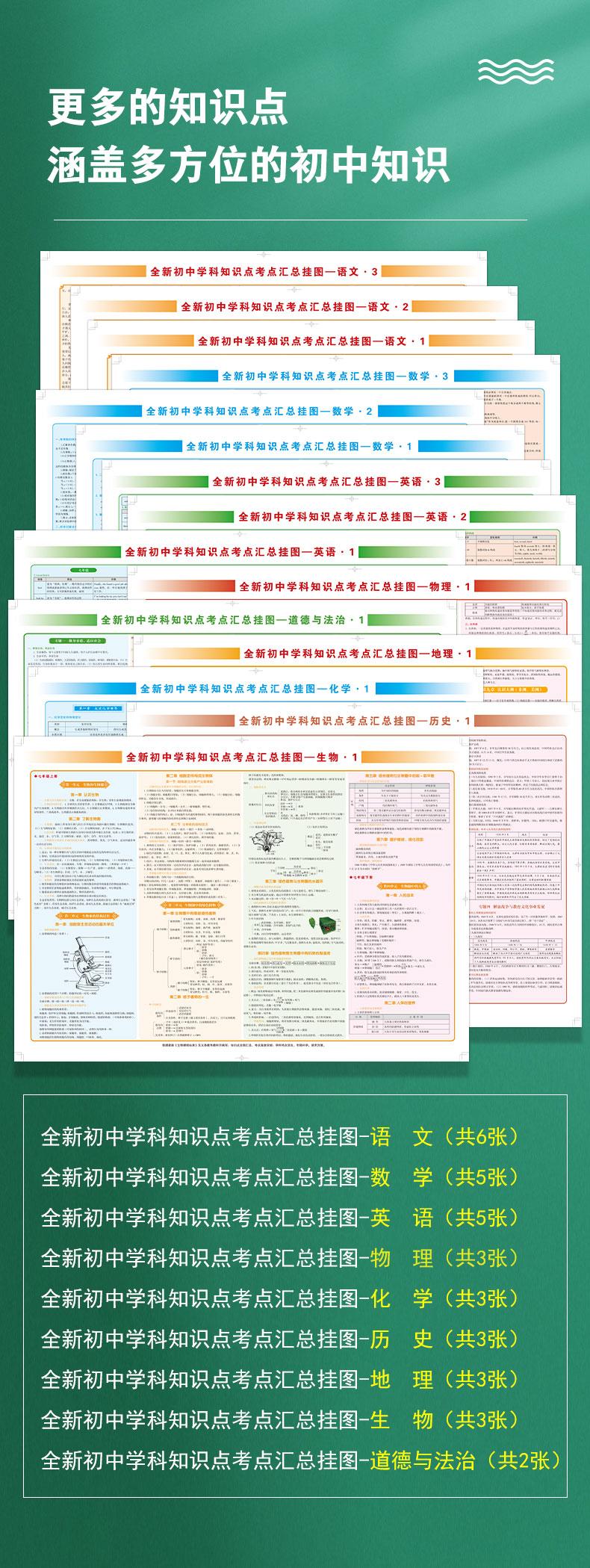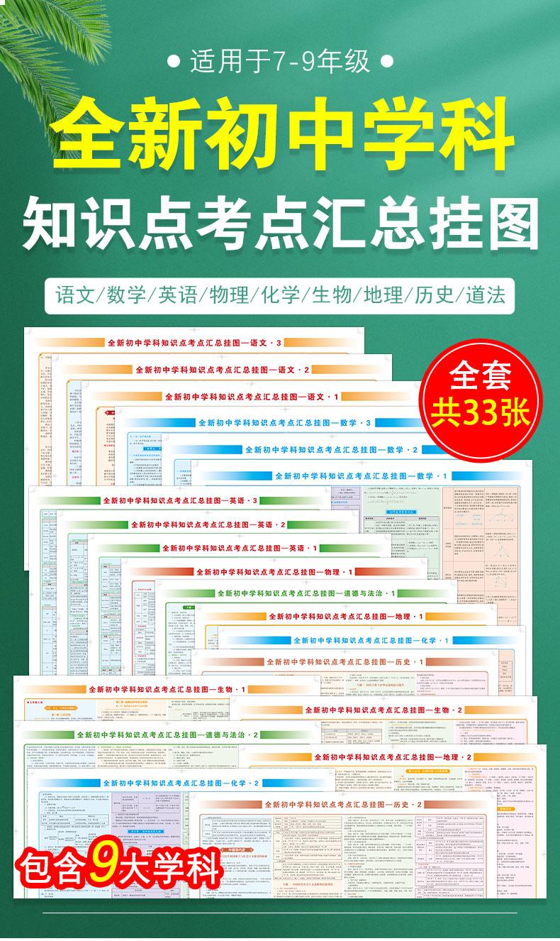 Un conjunto completo de 33 estudiantes de secundaria, un conjunto completo de puntos de prueba de conocimientos de la materia, gráfico mural resumen Chino Matemáticas Química Física Inglés