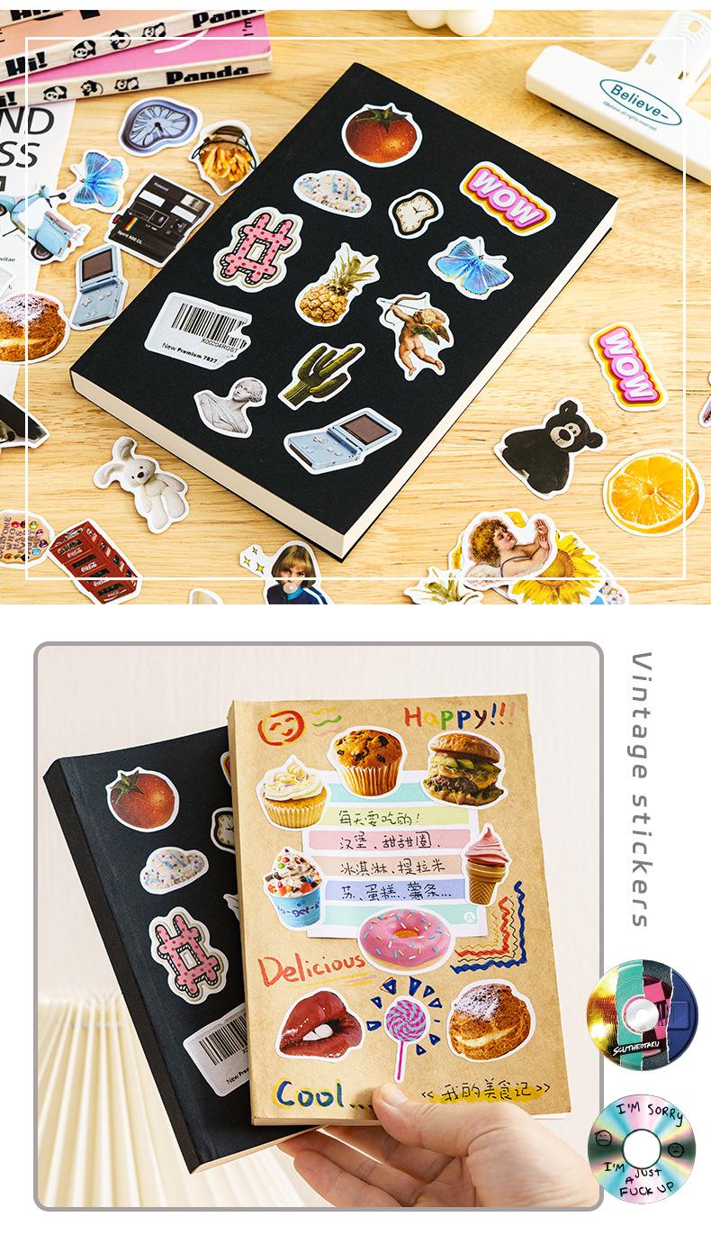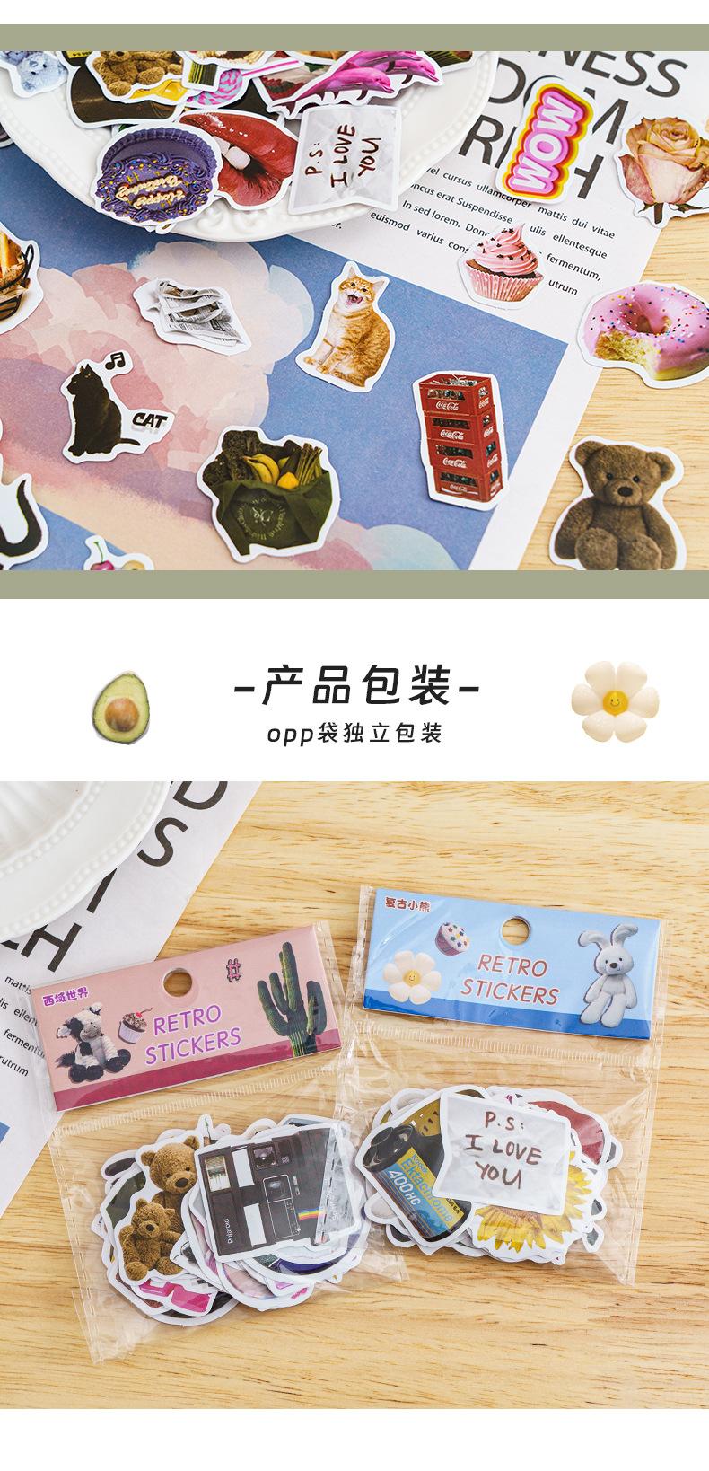 Paquete de pegatinas decorativas de la serie retro con personajes de dibujos animados, pegatinas autoadhesivas para diario, venta al por mayor