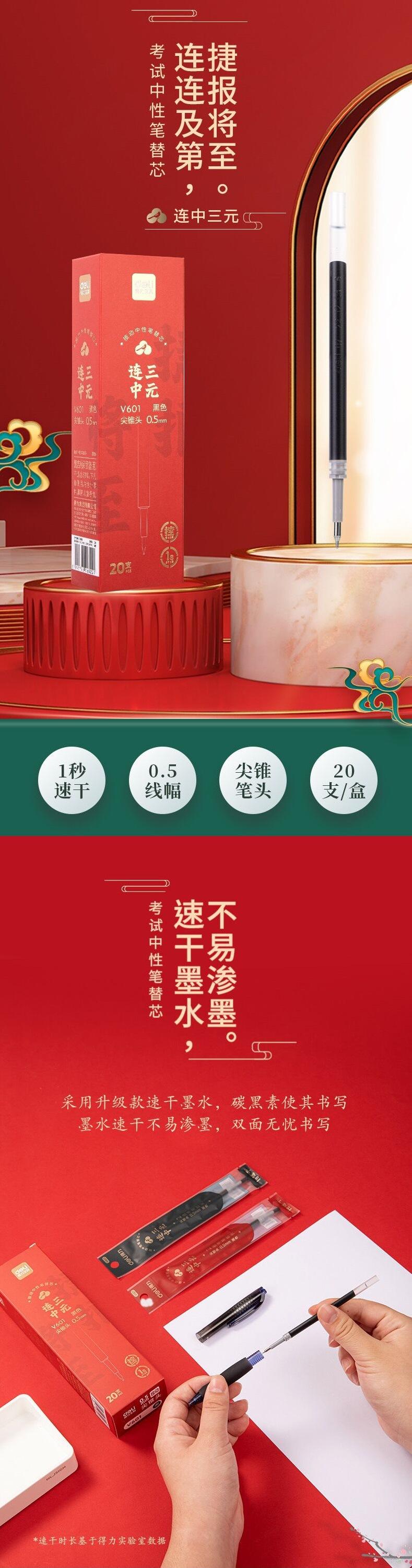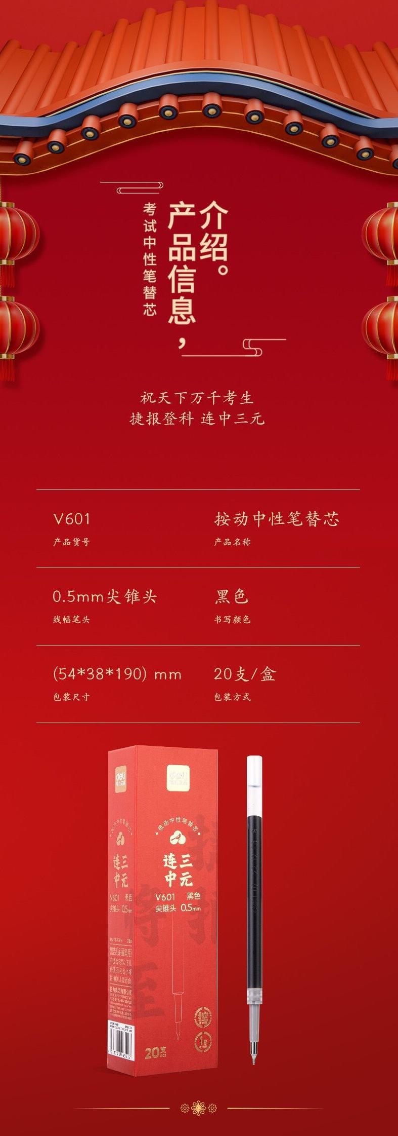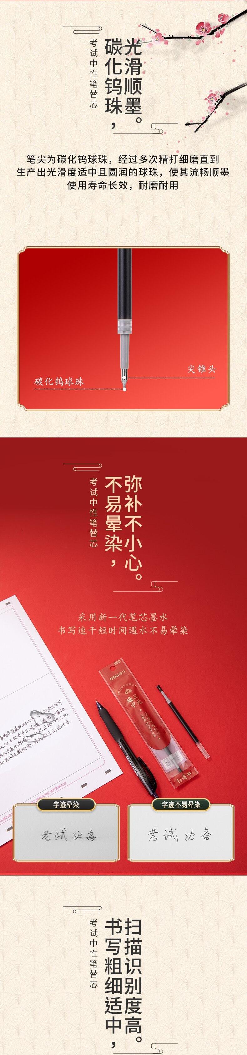 Deli V601 recarga para examen de secado rápido recarga neutra continua medio tres yuanes 0.5 mm punta de presión cabeza cónica recarga negra