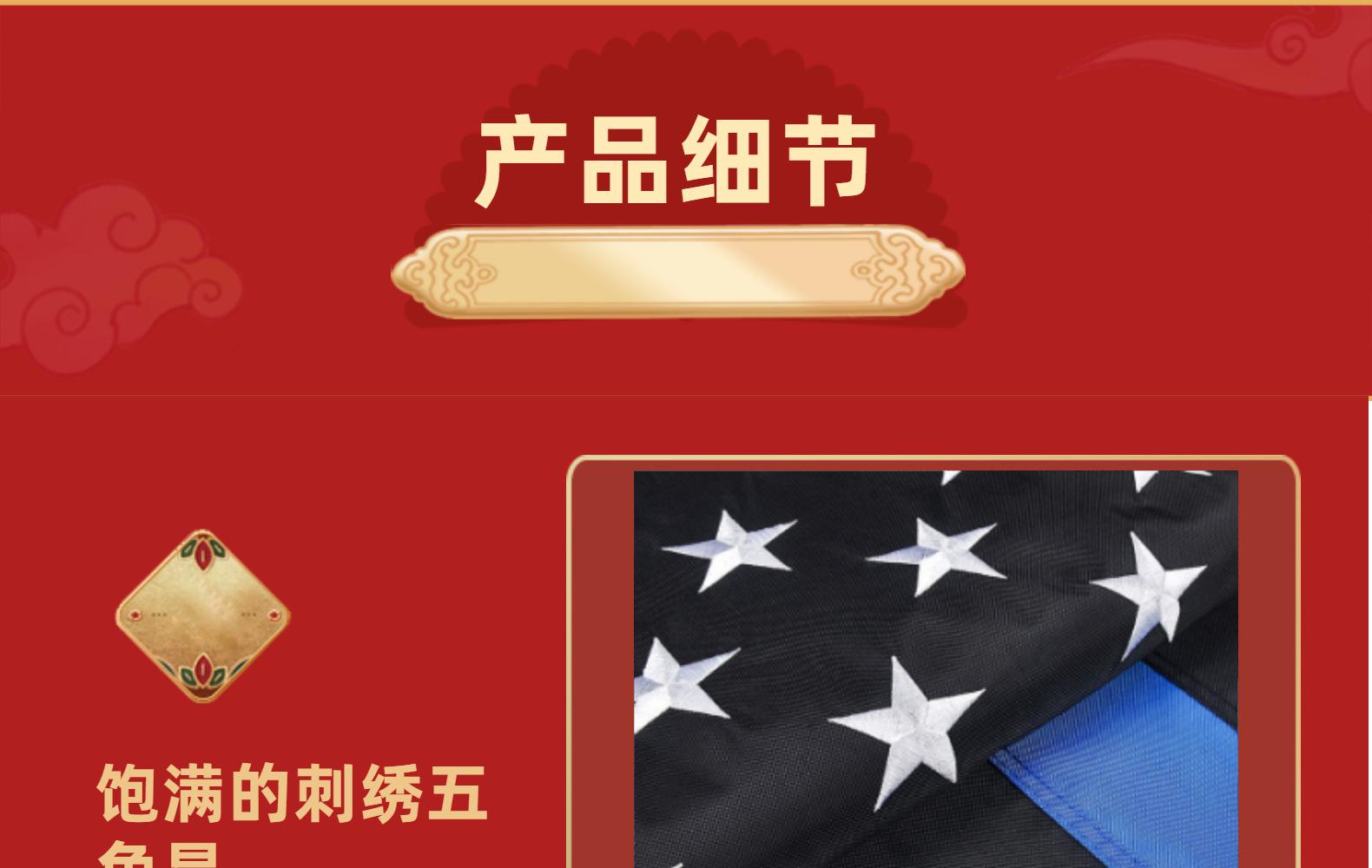 Bandera de policía estadounidense blanca y negra 3 * 5 pies bandera cosida 210D tela Oxford línea azul delgada bandera estadounidense bordada
