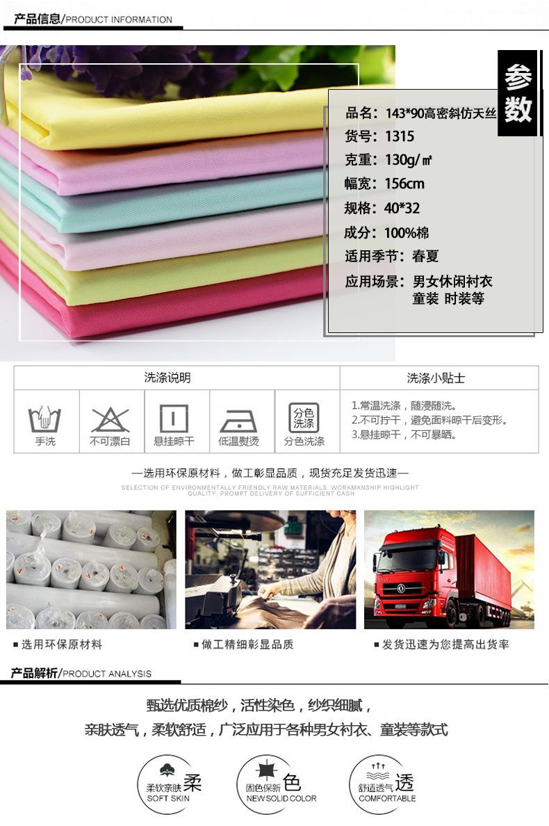 Tela de Algodón de Alta Densidad Diagonal Imitación Tencel 40*32 Diagonal Fina Totalmente Procesada Teñida Tela para Camisa de Uniforme Escolar Vestido