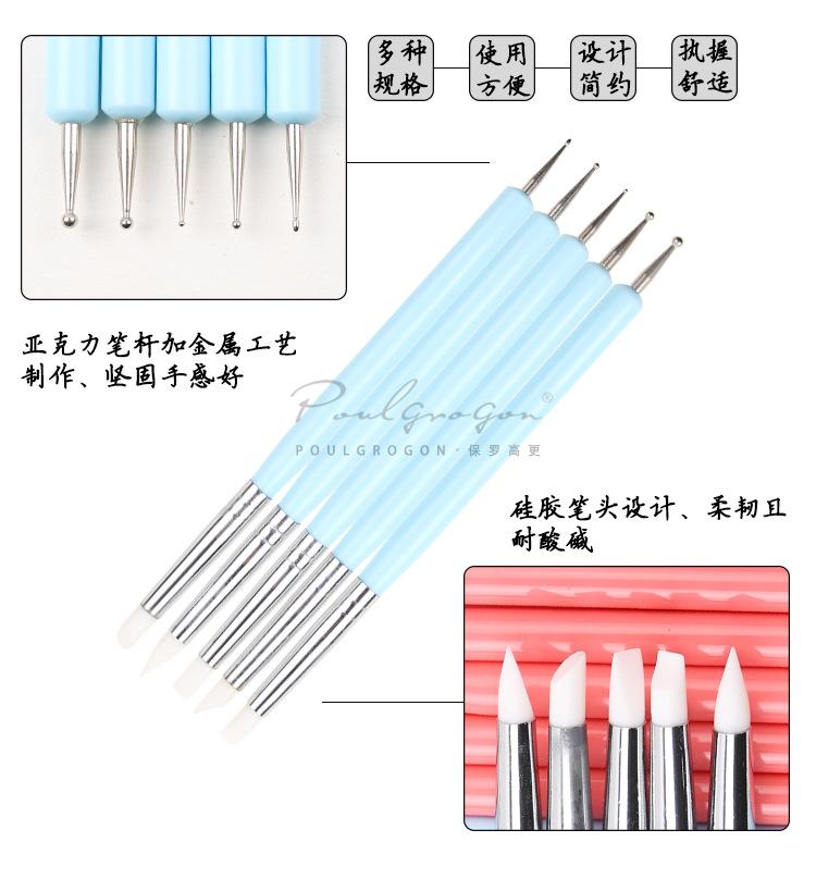 Ventas Directas de Fábrica Set de 5 Piezas Lápiz de Silicona para Manicura Arcilla Arcilla Ultraligera Lápiz de Indentación de Doble Punta Bolígrafo para Perforar Puntos Herramienta de Cerámica