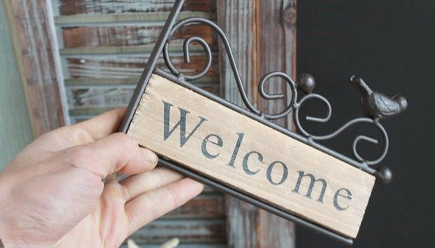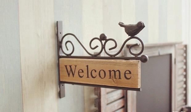 Zakka Americano rural pastoral hierro madera pájaro mini letrero de bienvenida placa de puerta decoración de pared accesorios de fotografía |