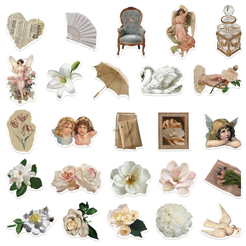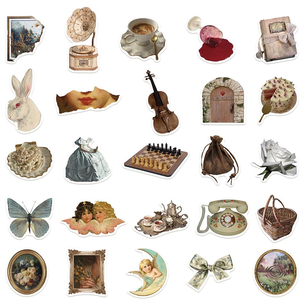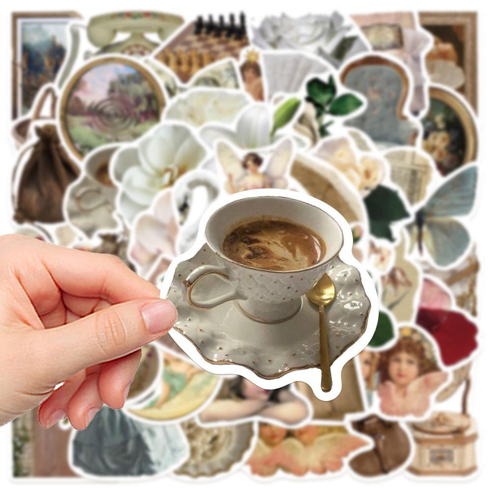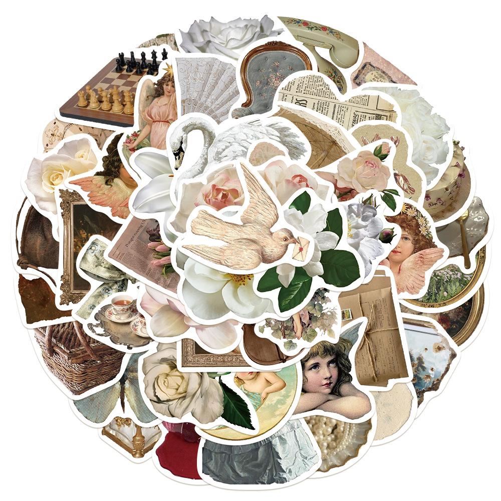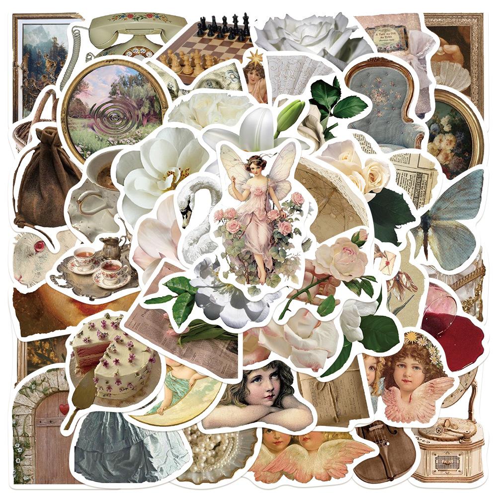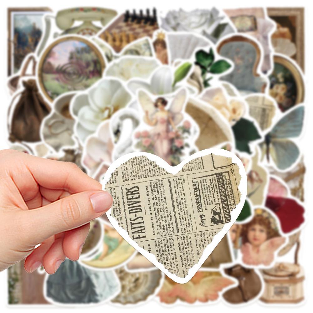 50 pegatinas retro para cuenta de mano, libro de cuenta de mano, carcasa de teléfono móvil, vaso al vacío, DIY decorativas, impermeables, pegatinas calientes transfronterizas