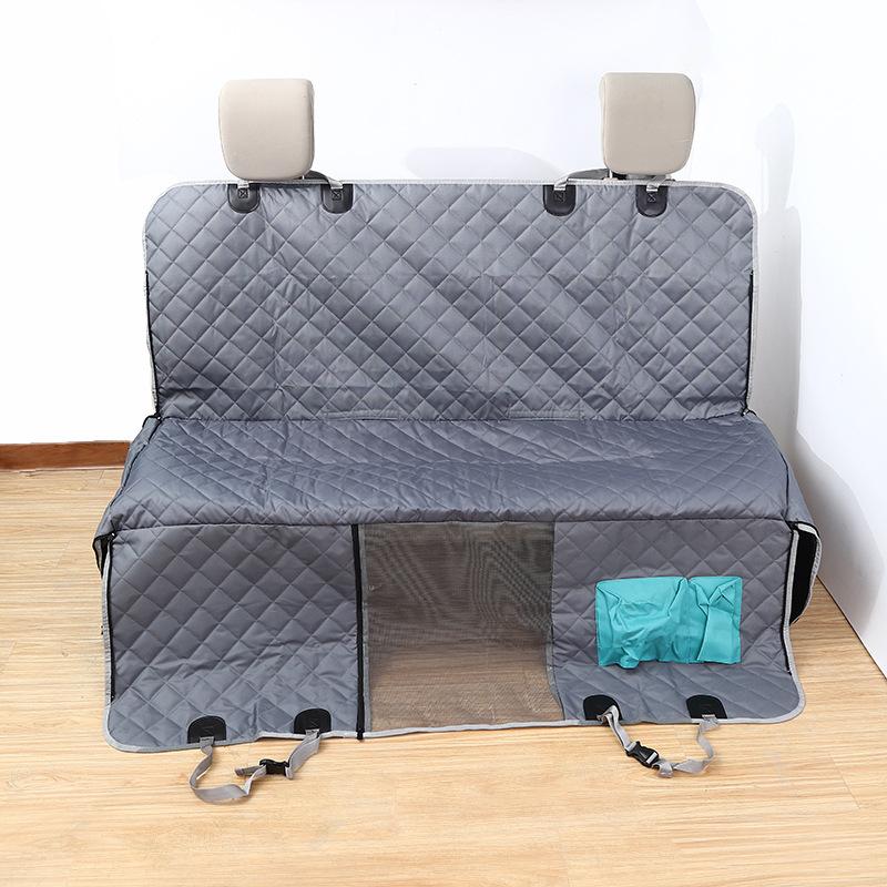 Nombre del producto: Alfombrilla de lujo en relieve para asiento trasero doble para perro (con diseño de ranura para cinturón de seguridad)