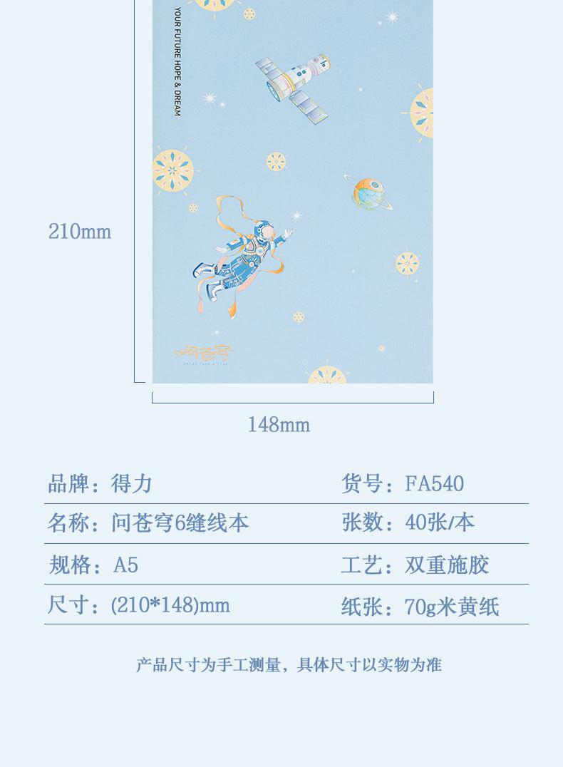 Deli FA540 Libro de Sutura Espacial China (Pregunta a Sky 6)(Libro) Cuaderno de Ejercicios para Estudiantes Copia Suave