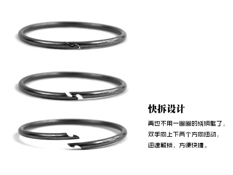 Características: Hecho de acero para resortes, tratado térmicamente y no se deforma fácilmente [por supuesto, no puede seguir doblándolo], se puede abrir o cerrar rápidamente, se puede encajar directamente con un golpe corto, se puede proteger de clavos sin desmontar, el bucle único es simple y hermoso.