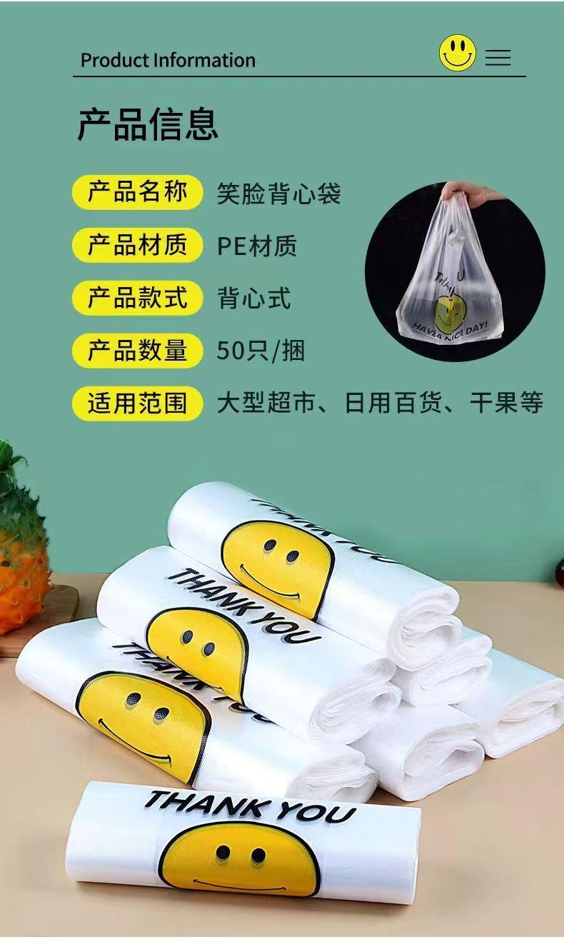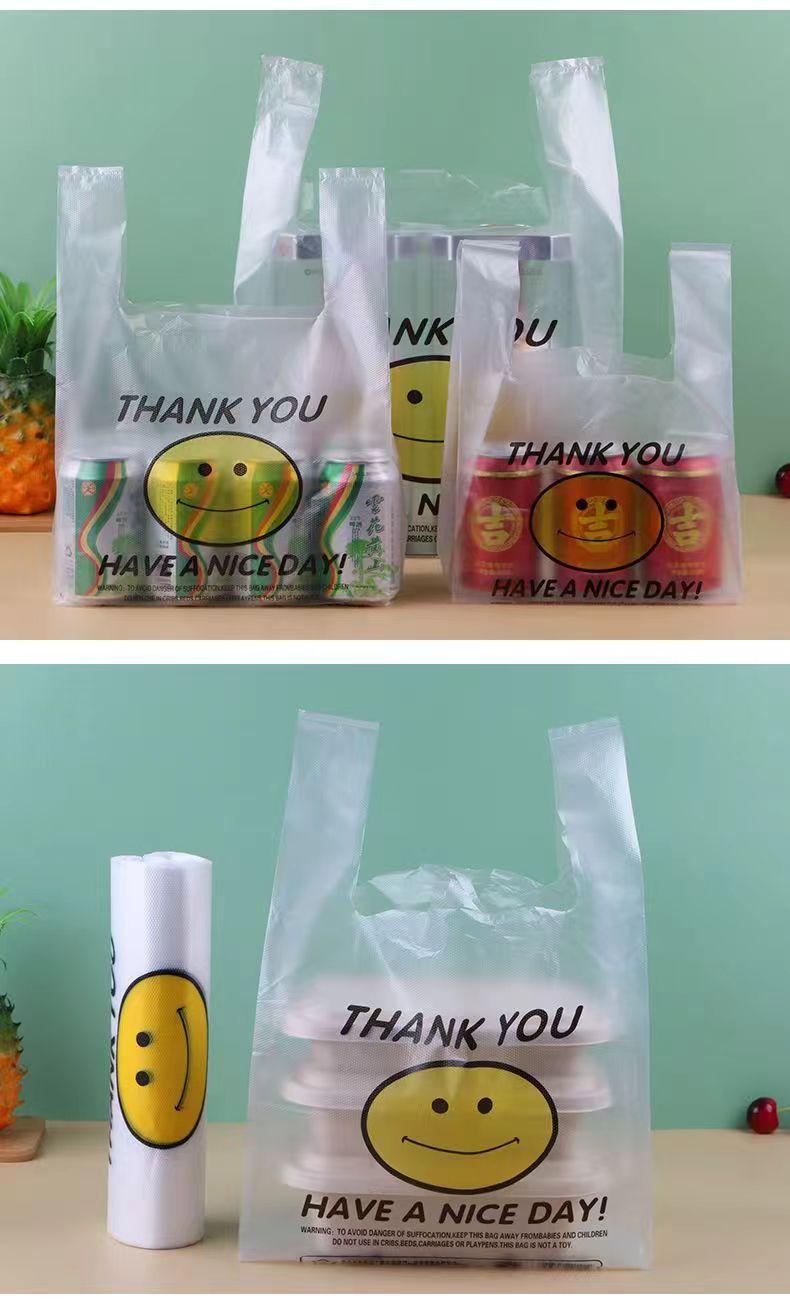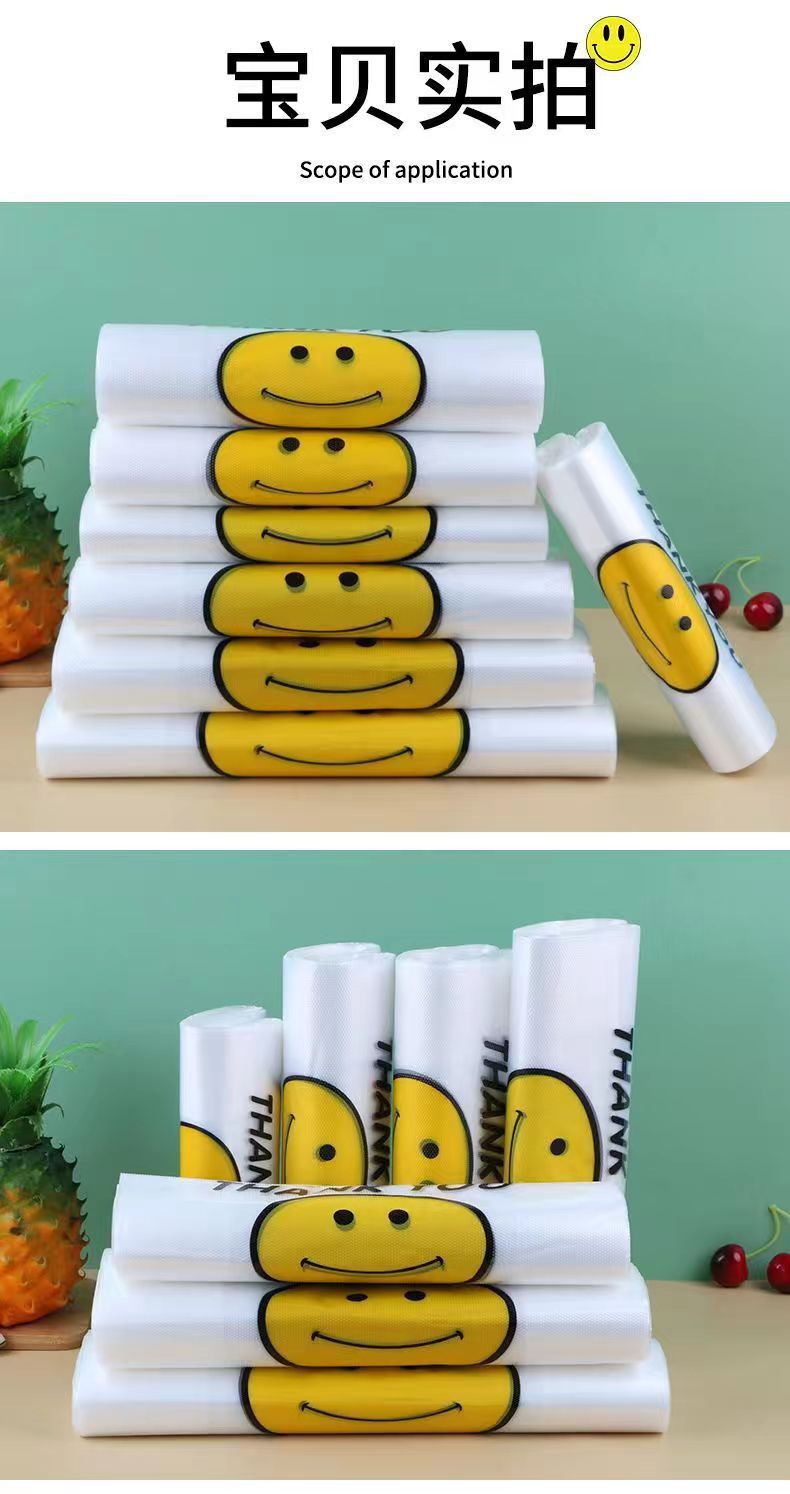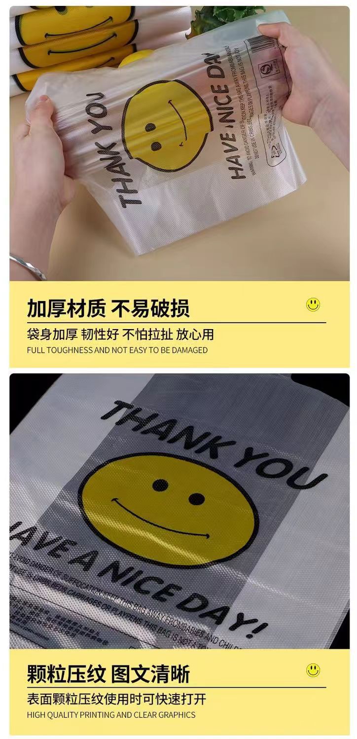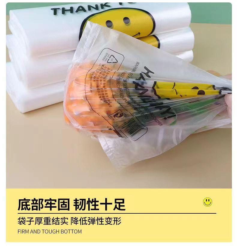Bolsa de plástico Smiley, venta al por mayor, gruesa, práctica, para compras de supermercado, para llevar, embalaje, tipo chaleco, bolsa de mano