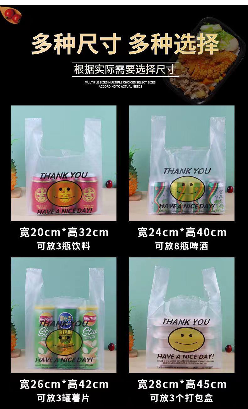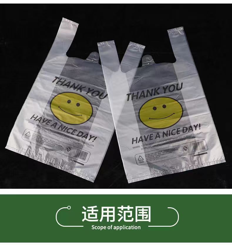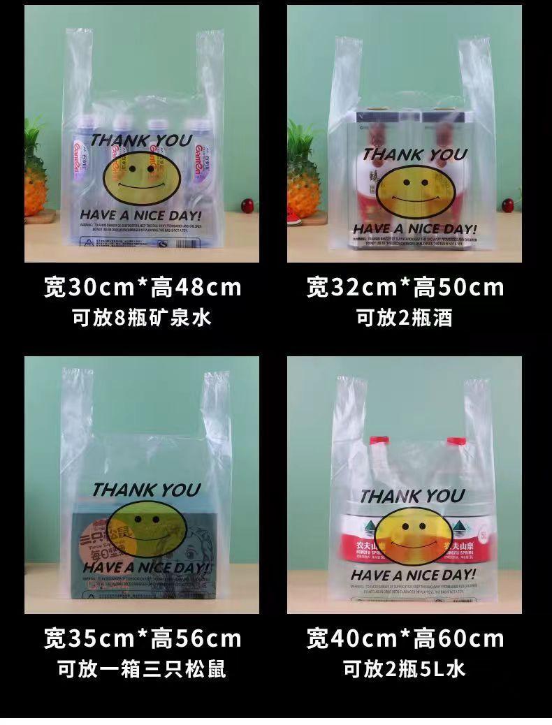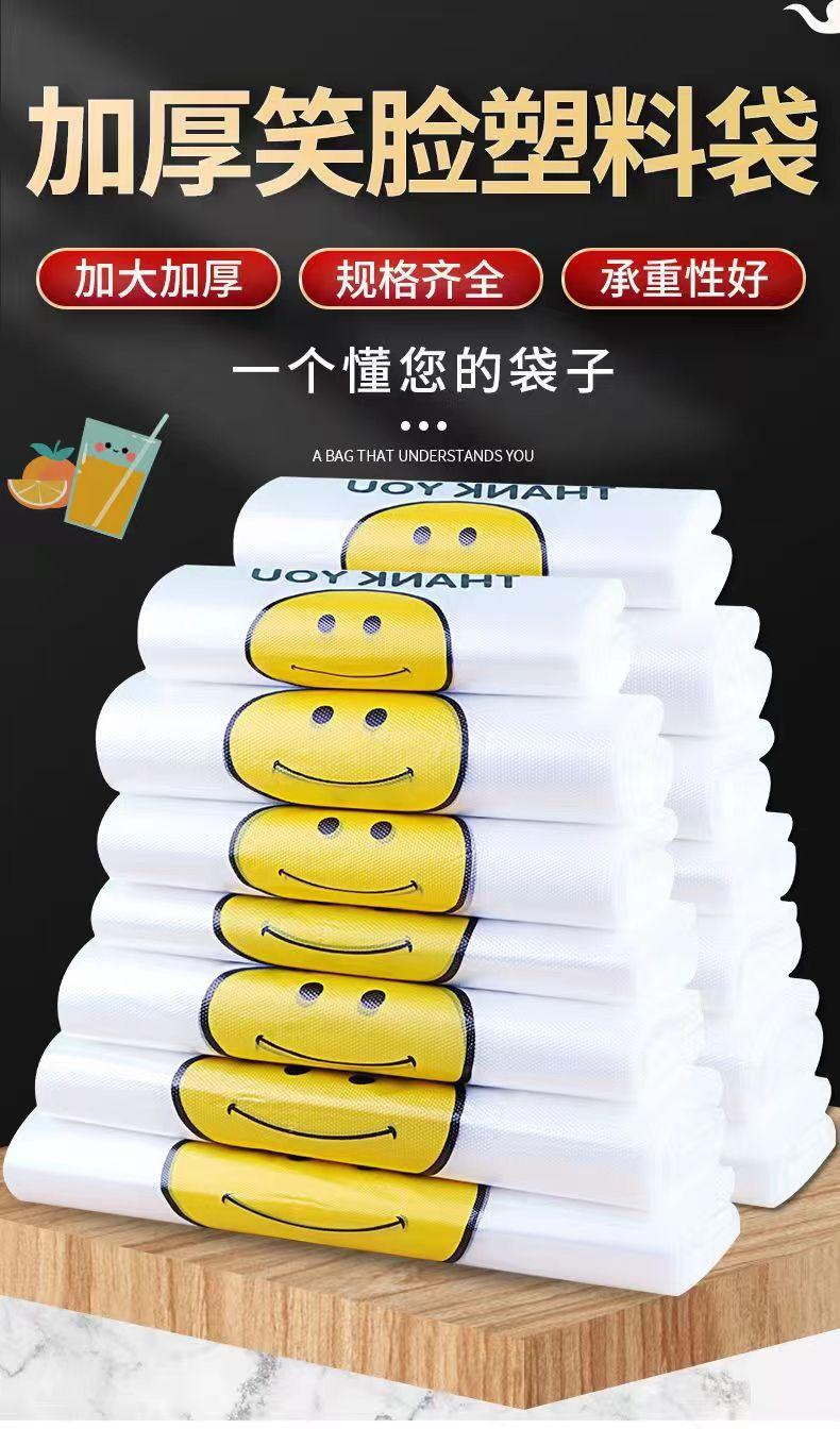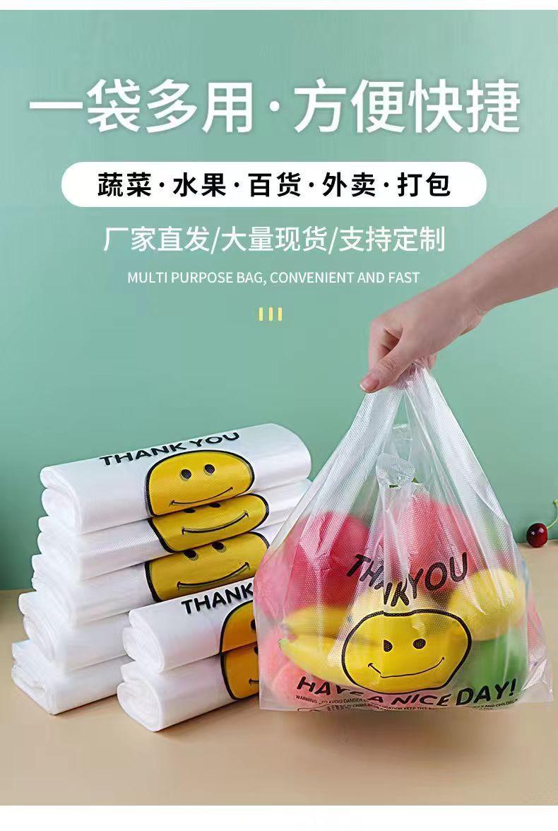 Bolsa de plástico Smiley, venta al por mayor, gruesa, práctica, para compras de supermercado, para llevar, embalaje, tipo chaleco, bolsa de mano