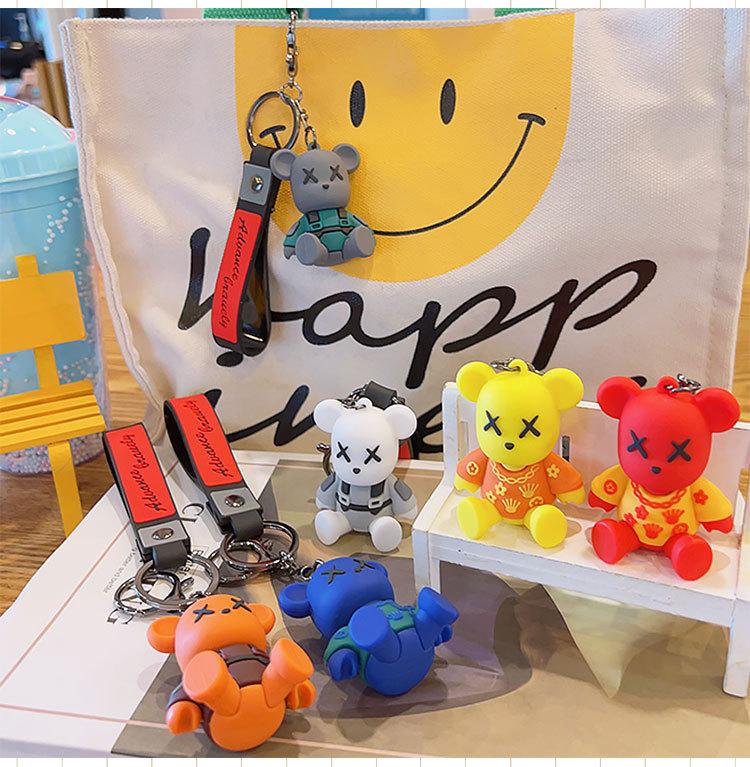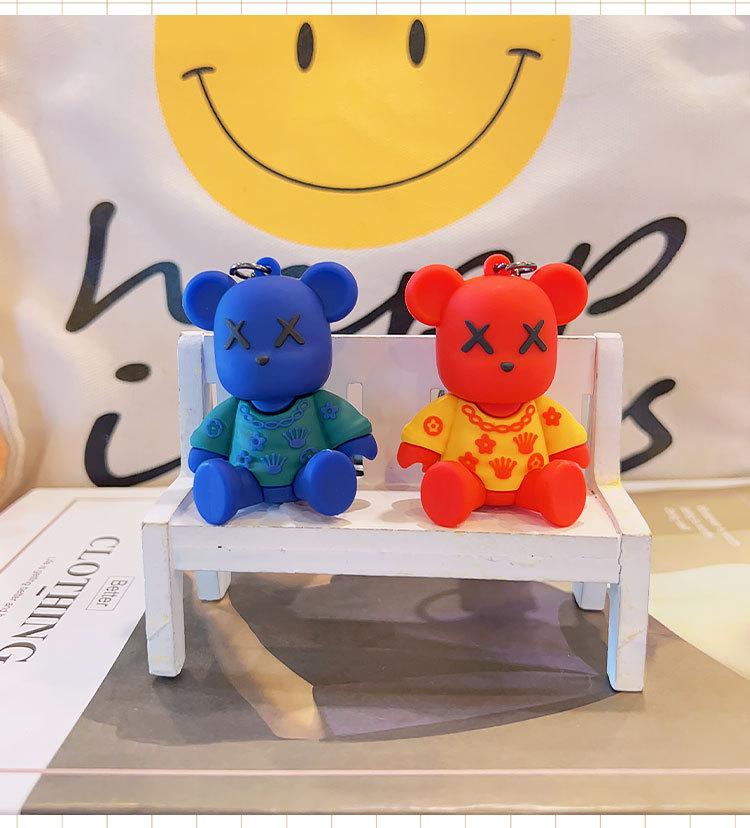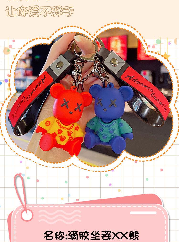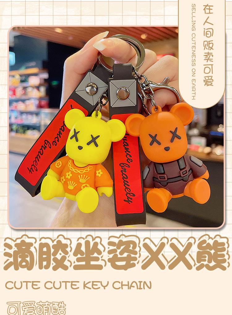 Lindo Oso Sentado pvc suave llavero colgante al por mayor caricatura colgante para mochila escolar llavero para coche muñeco