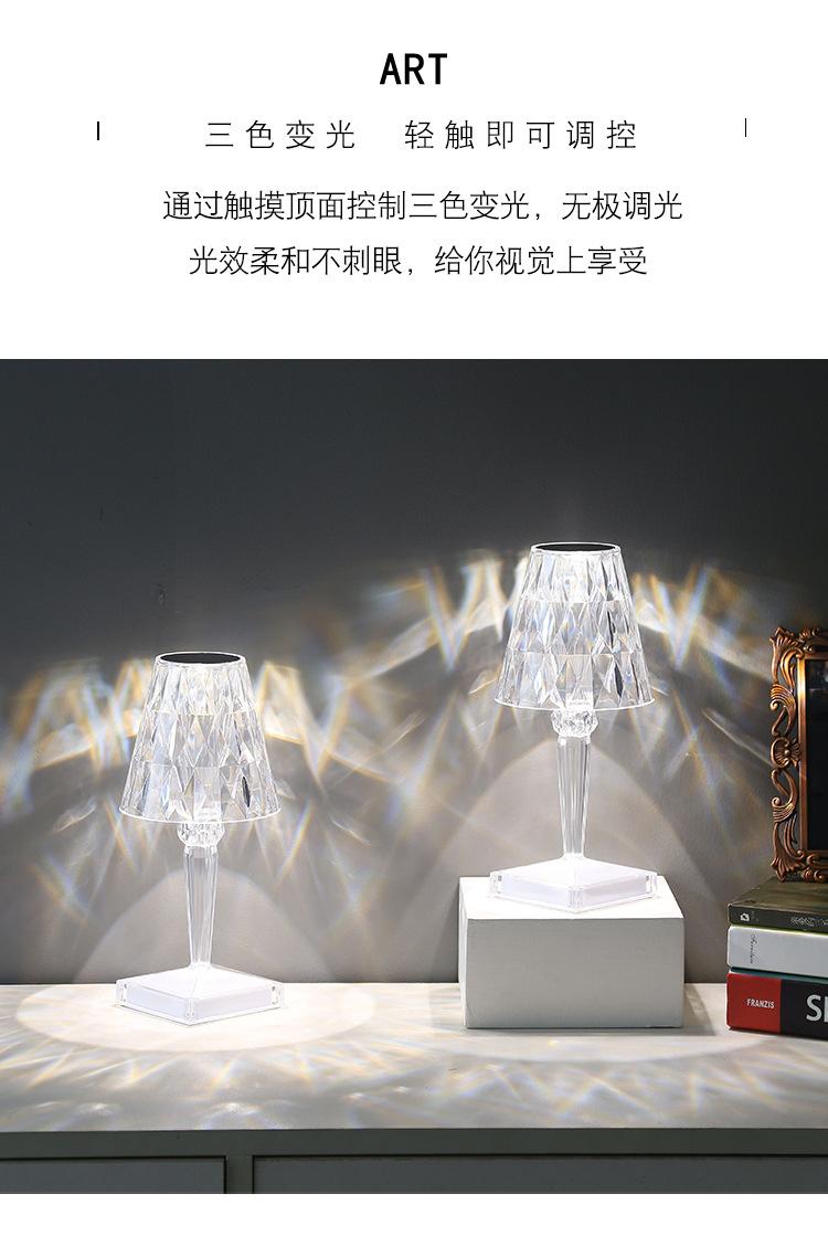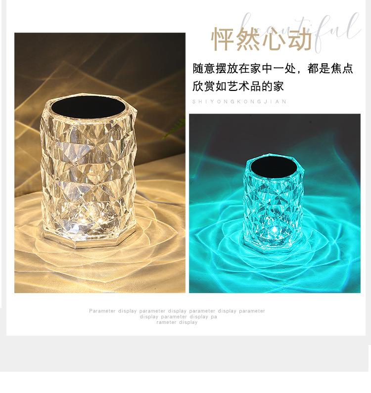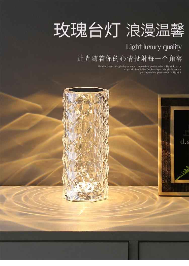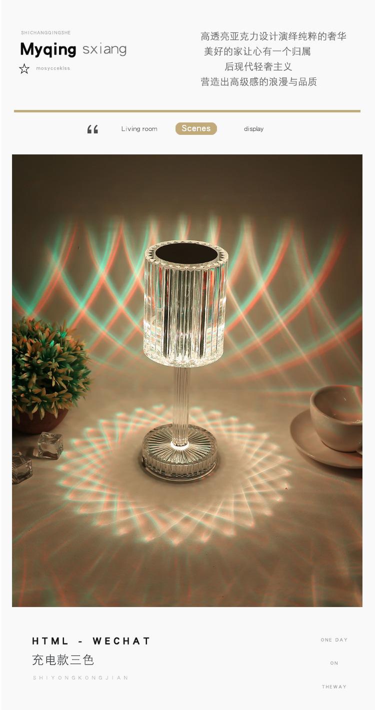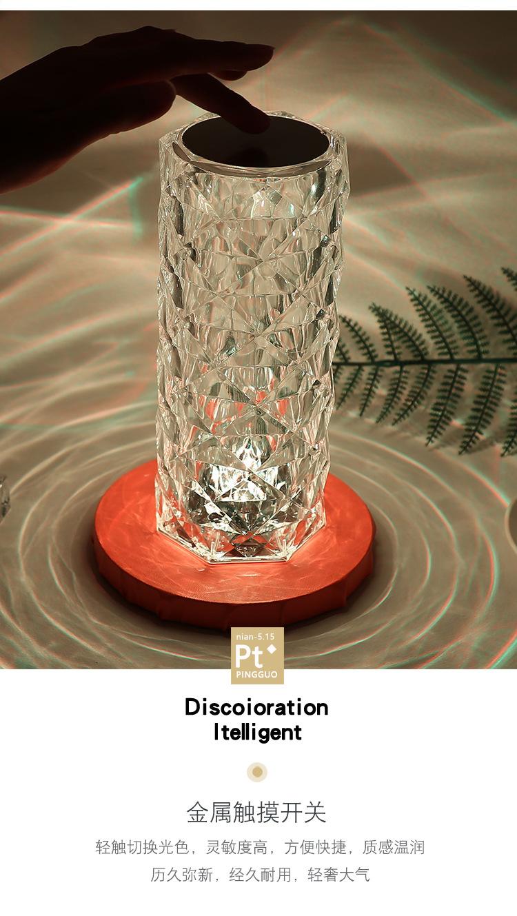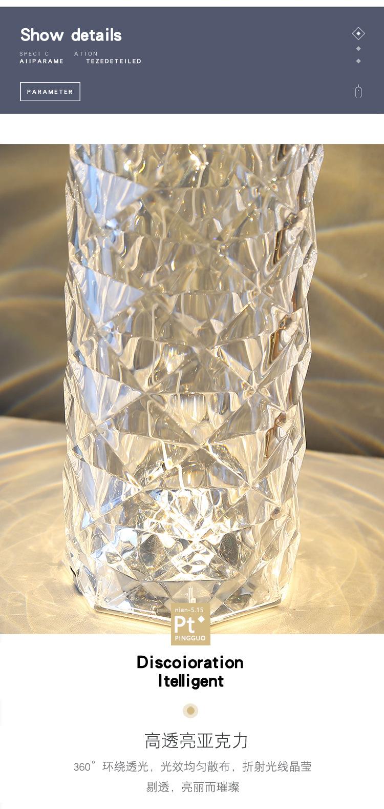 | Lámpara de mesa pequeña de cristal moderna y sencilla, lámpara de color rosa, lámpara de ambiente, lámpara de noche para dormitorio, lámpara de noche de lujo de celebridades de Internet |