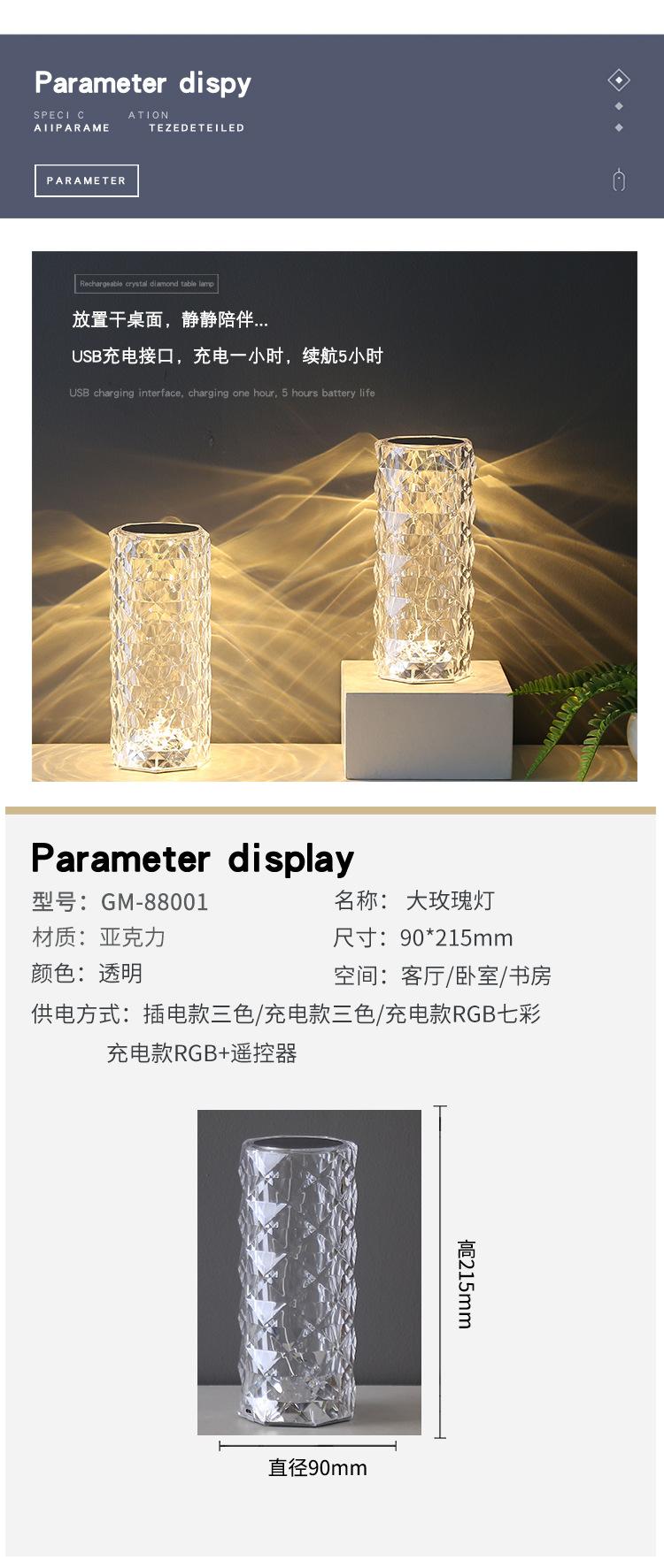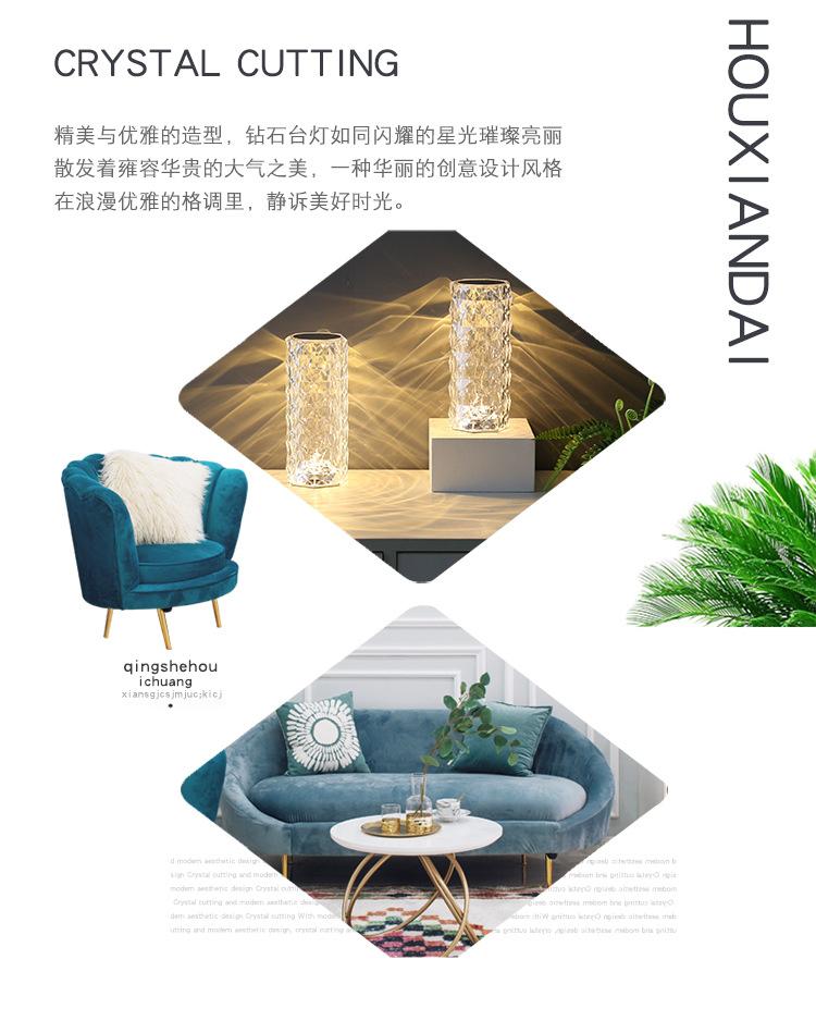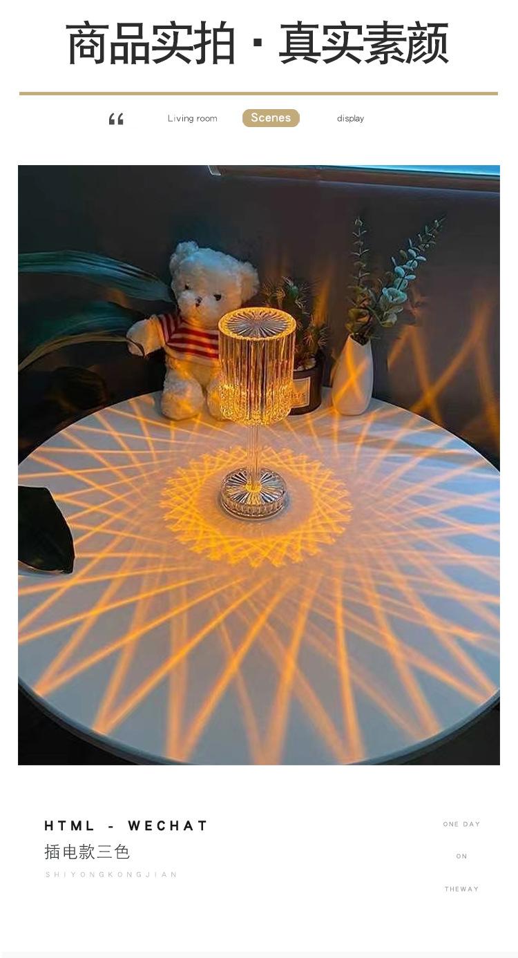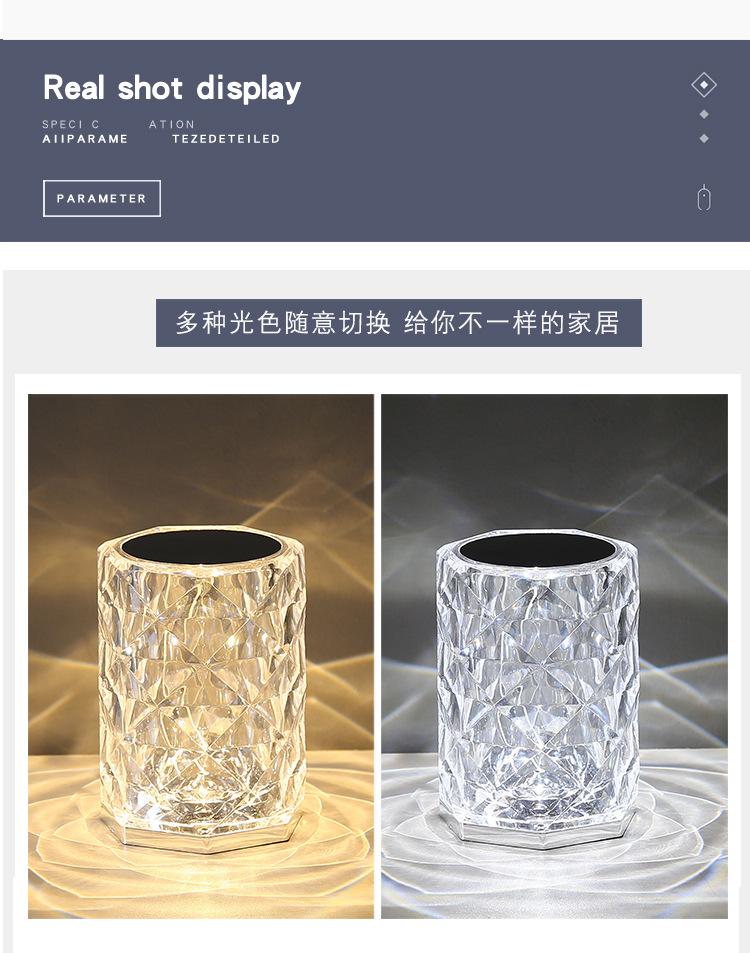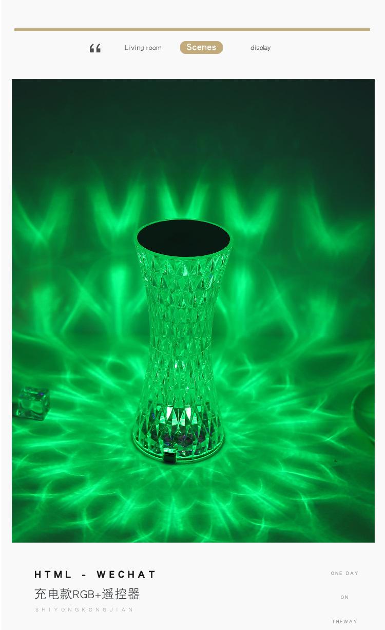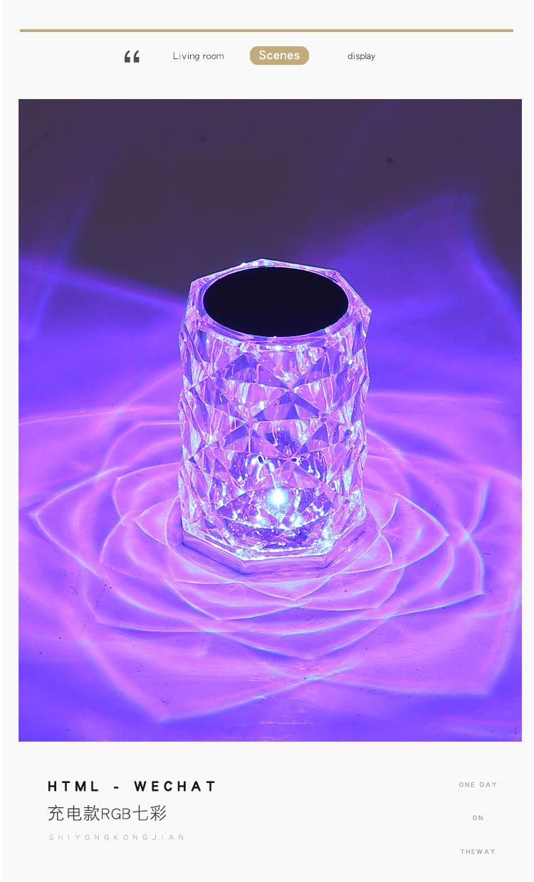 | Lámpara de mesa pequeña de cristal moderna y sencilla, lámpara de color rosa, lámpara de ambiente, lámpara de noche para dormitorio, lámpara de noche de lujo de celebridades de Internet |