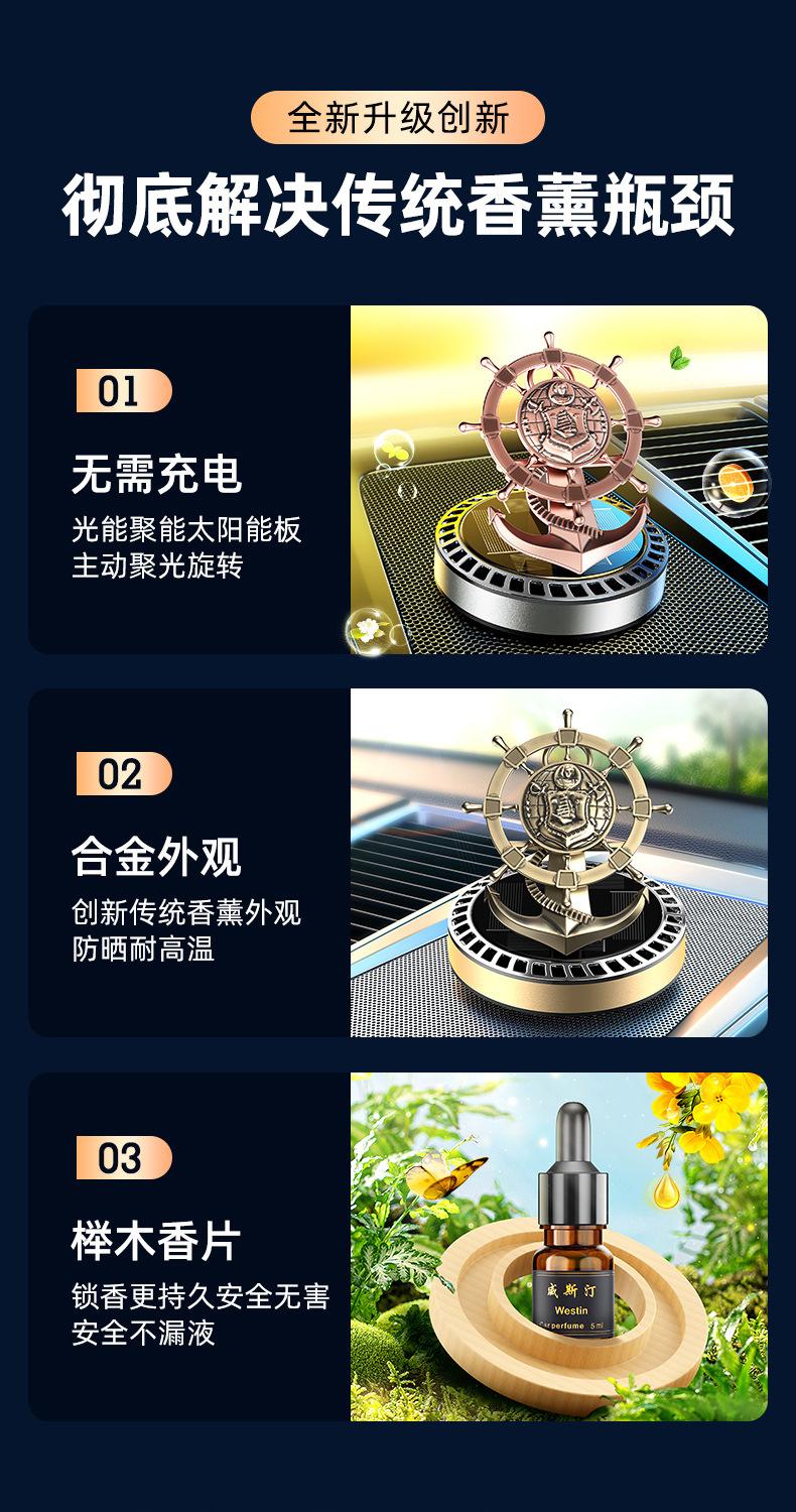 Aromaterapia solar para coche, perfume para coche, decoración de alta gama, timón solar, aceite esencial, suministros de aromaterapia