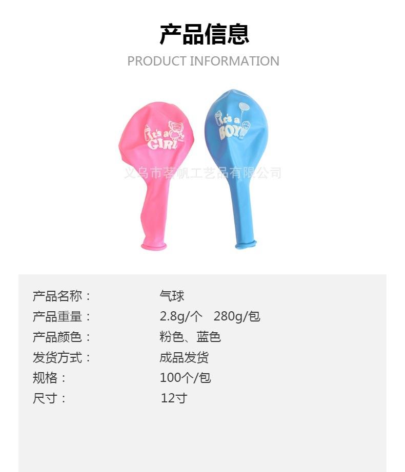 12 inch 2.8g pink it's a girl balloon, 12 inch 2.8g blue it's a boy balloon