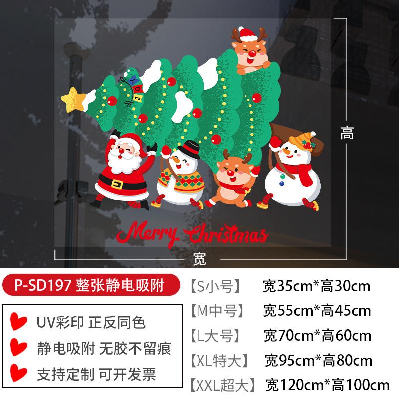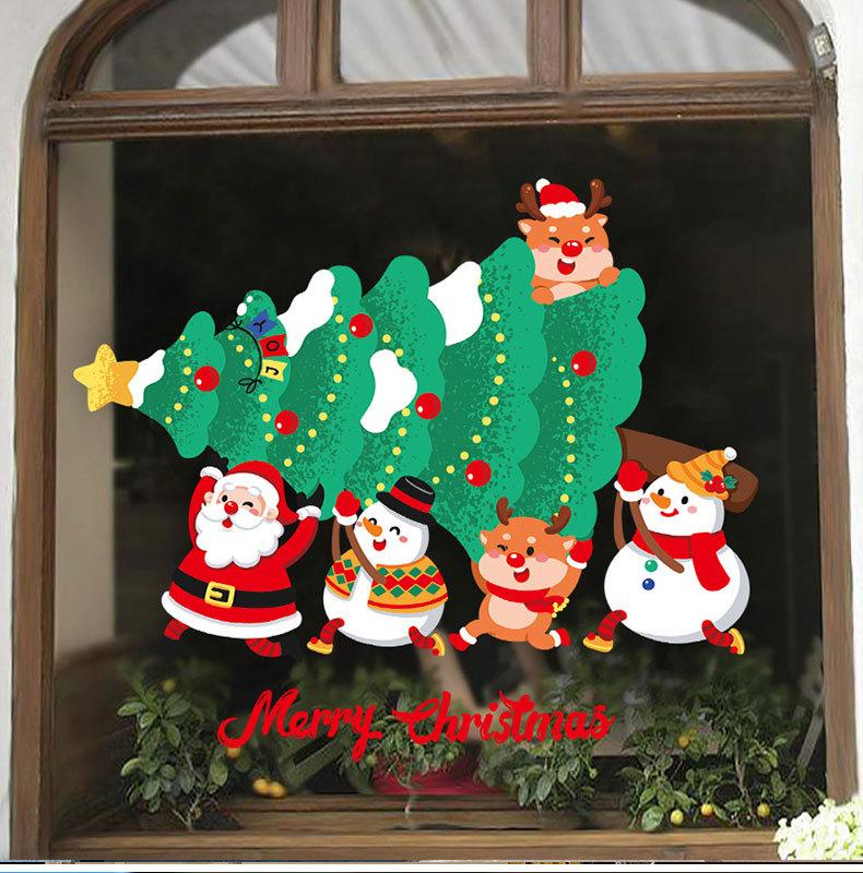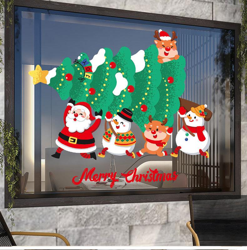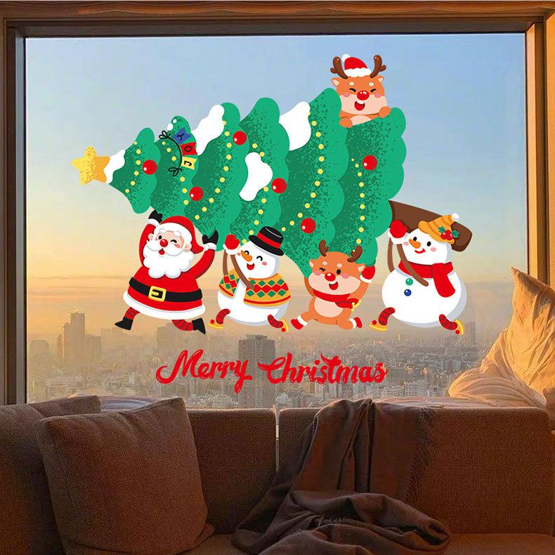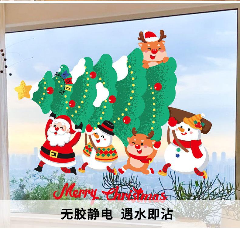 Pegatinas estáticas para árbol de Navidad, muñeco de nieve, alce, diseño de escena de ventana de vidrio de centro comercial, pegatinas de Papá Noel, decoración navideña