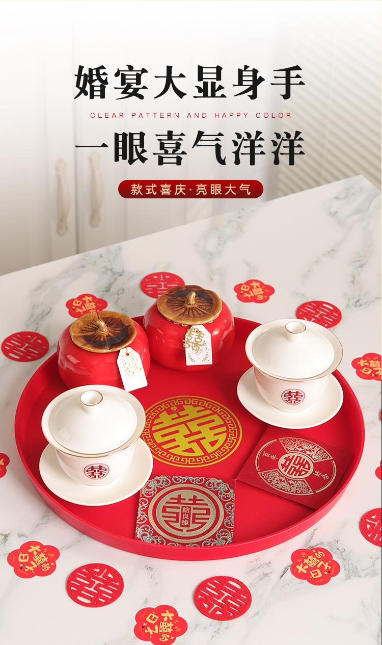Plato de Frutas para Boda Plato de Dulces Sala de Estar para Boda Rojo Festivo Brindis Bandeja de Té Suministros para Boda