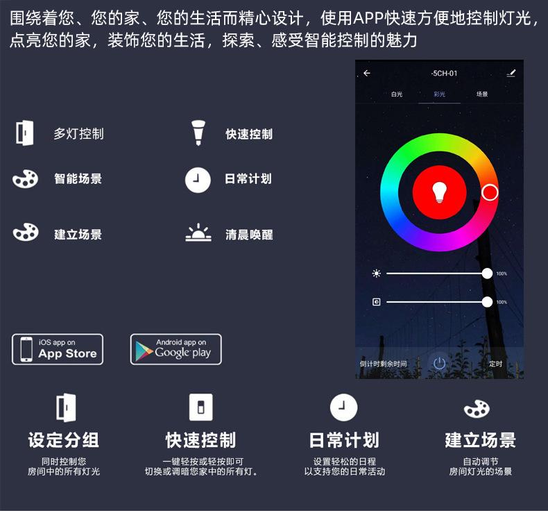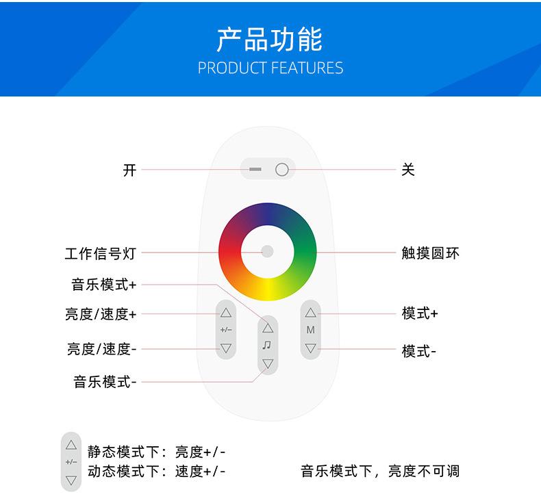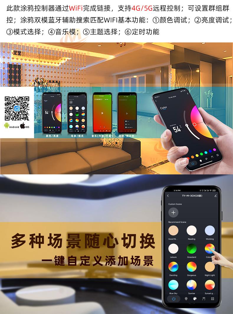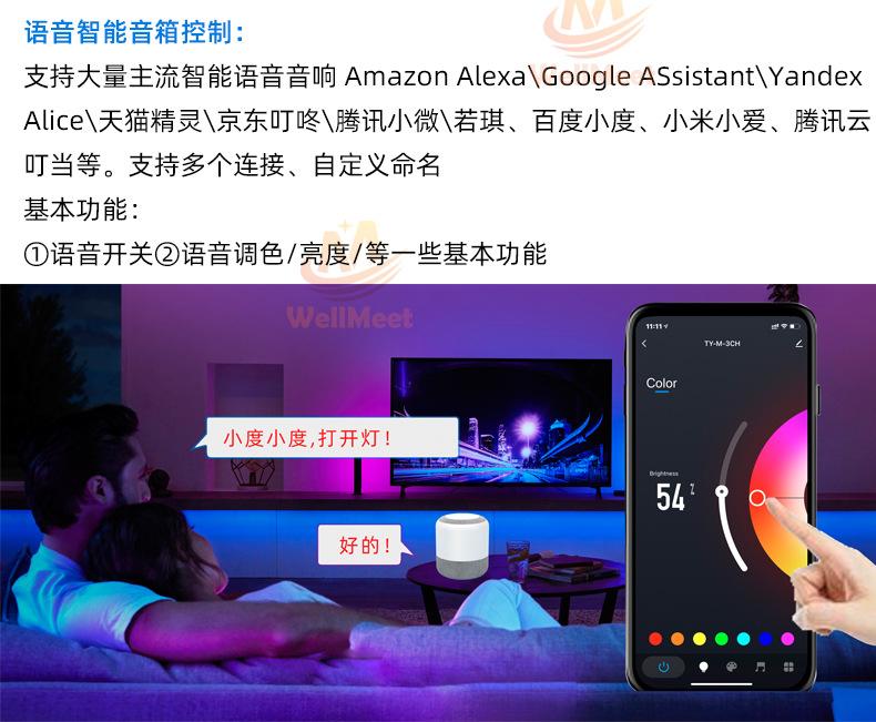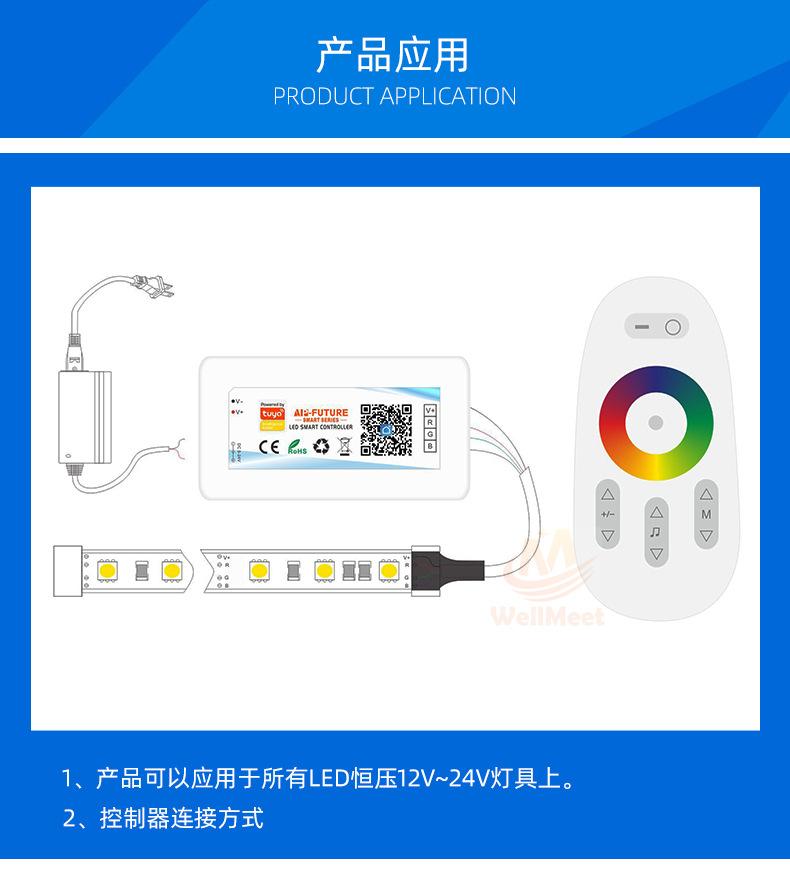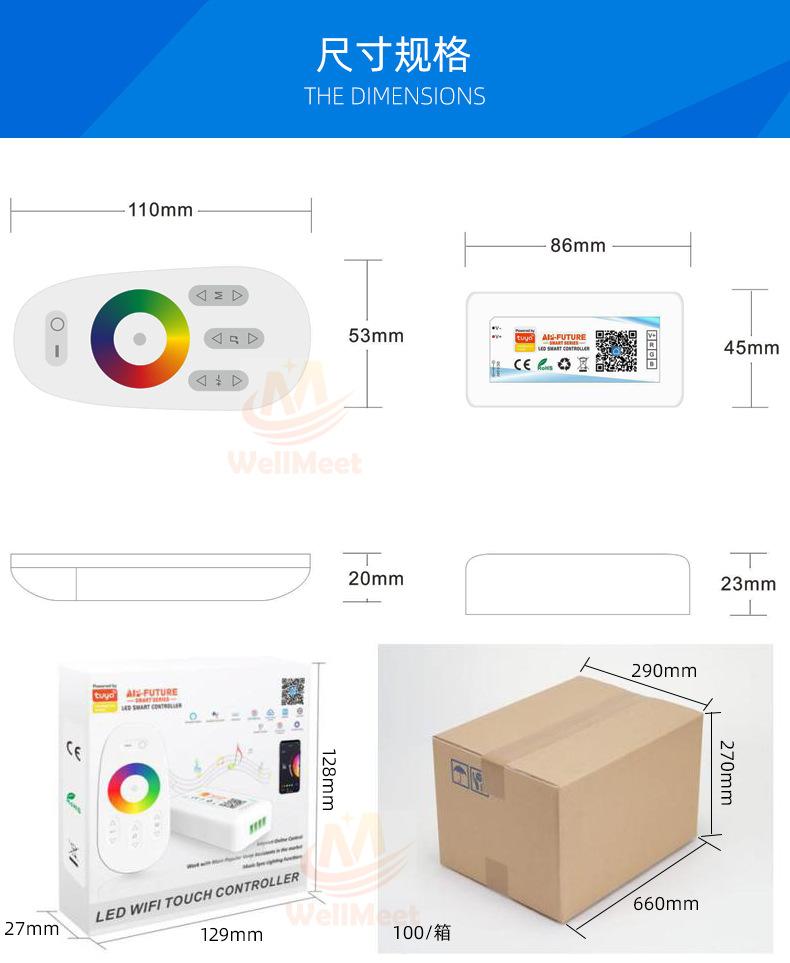 Controlador Táctil WiFi TuyaEl controlador es un controlador que integra la última tecnología WIFI del mercado, hace que el control del LED sea más cómodo y fácil de usar.usarControl remoto táctil de alta sensibilidad,Con función WiFiAdmite control de aplicaciones y altavoz inteligente externo.La luz cambia sincrónicamente con el sonido o el ritmo de la música y la distancia de respuesta es lejana;Tiene una función de memoria de apagado, es decir, cuando la tira de luz se apaga o se enciende nuevamente después de un corte de energía, restaurará automáticamente el estado de la luz antes del apagado.¡Esto es justo lo que todos los clientes desean! La tecnología wifi amplía nuestro alcance de control y nos permite superar las limitaciones de los espacios reducidos. Además, puedes usar un control remoto táctil; cuando no uses el control remoto de tu teléfono móvil, puedes ajustar los cambios de color.seriepersonalizable:DIMMER(monocromo); FRÍO Y CÁLIDO(canal doble); RGB; RGBW; RGBCW;Múltiples opciones, elige la tuya.