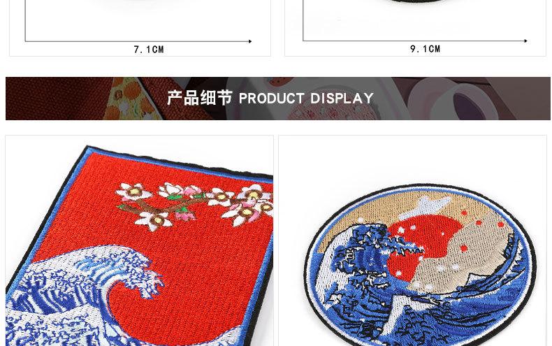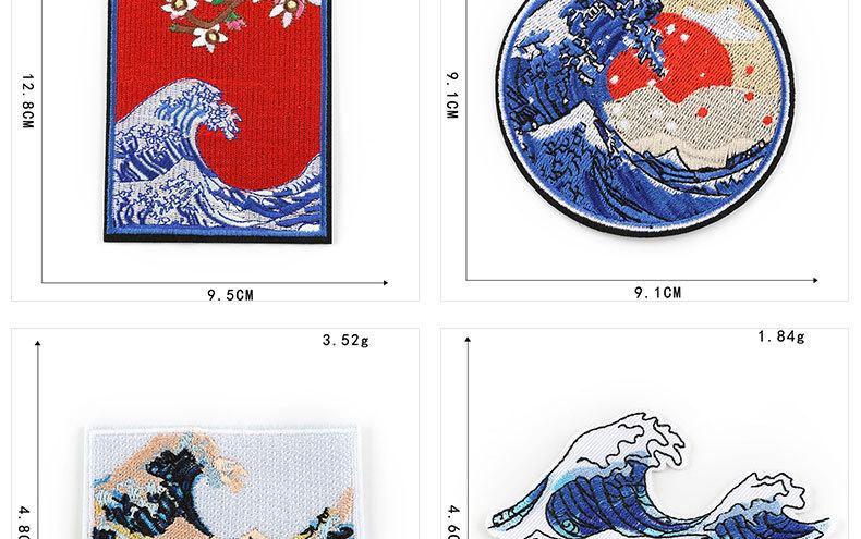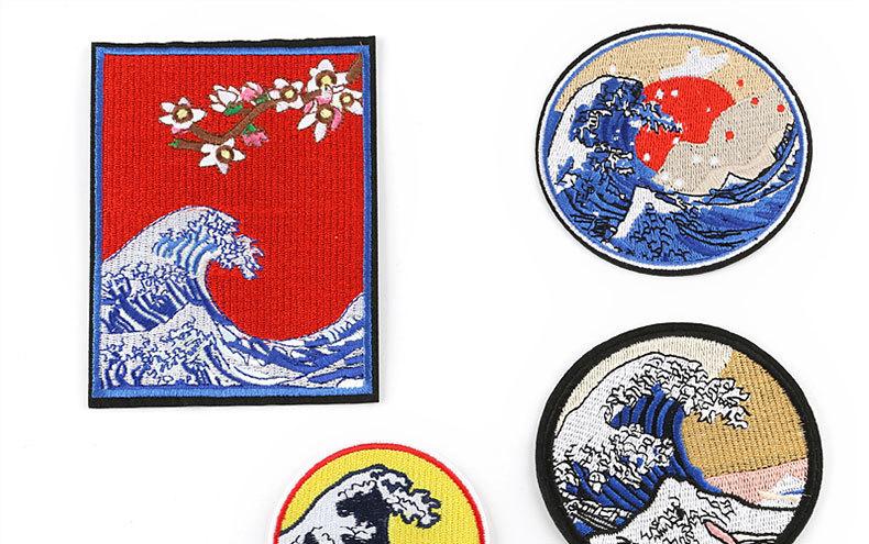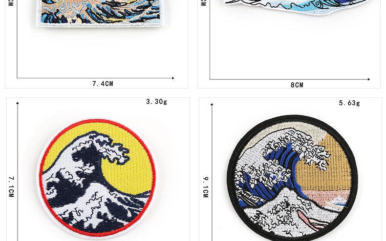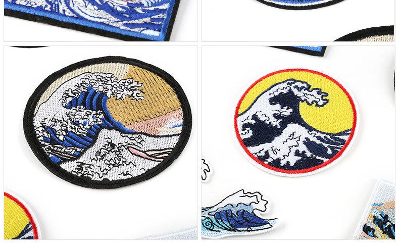 Accesorios para prendas de vestir con bordado de fresa, diseño de ondas marinas y sol de Zhangzi, insignias de tela bordadas, pegatinas de tela bordadas, parches adhesivos