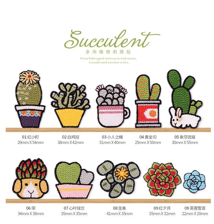 Pegatinas de tela para planchar con bordado de cactus suculentos, parches para agujeros de ropa y pantalones, pegatinas para coser manchas