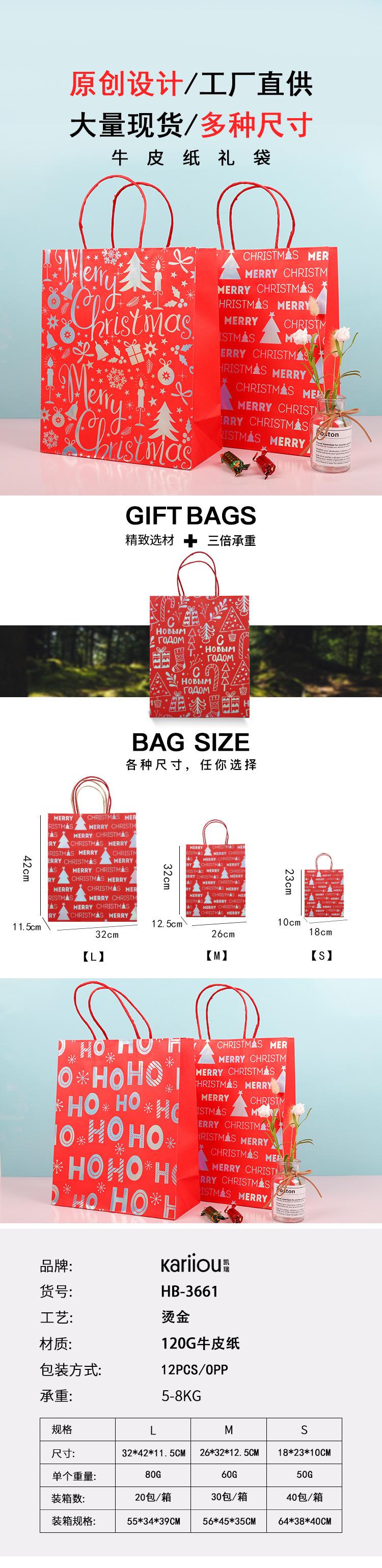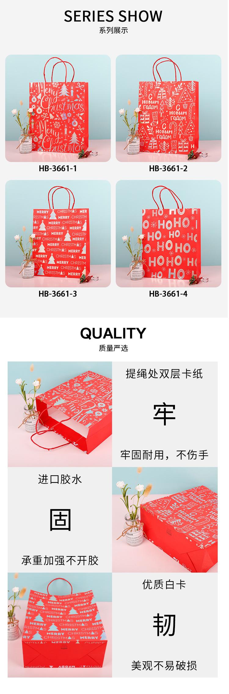 HB-3661 Christmas bags are delivered in four colors; White cardboard; 21*25.5 * 10cm