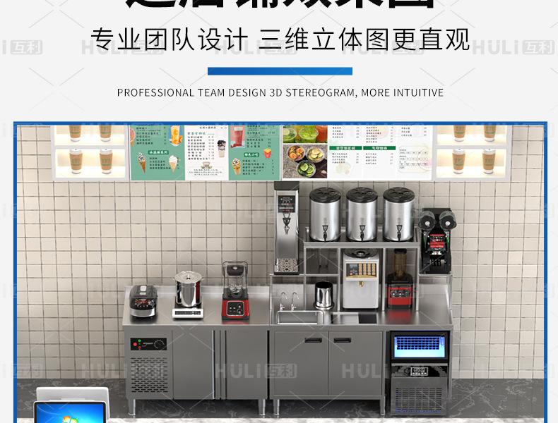 Mesa de operaciones de té con leche y barra de agua, mesa de trabajo comercial de acero inoxidable, gabinete integrado, fabricantes al por mayor, conjunto completo de equipos para tienda de té con leche