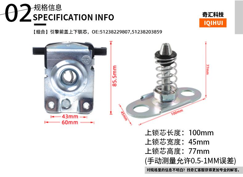 Modificación de Coche Combinación Cubierta Delantera del Motor Cilindro de Bloqueo Superior e Inferior Adecuado para X5 Bmw Cilindro de Bloqueo del Capó 51238229807