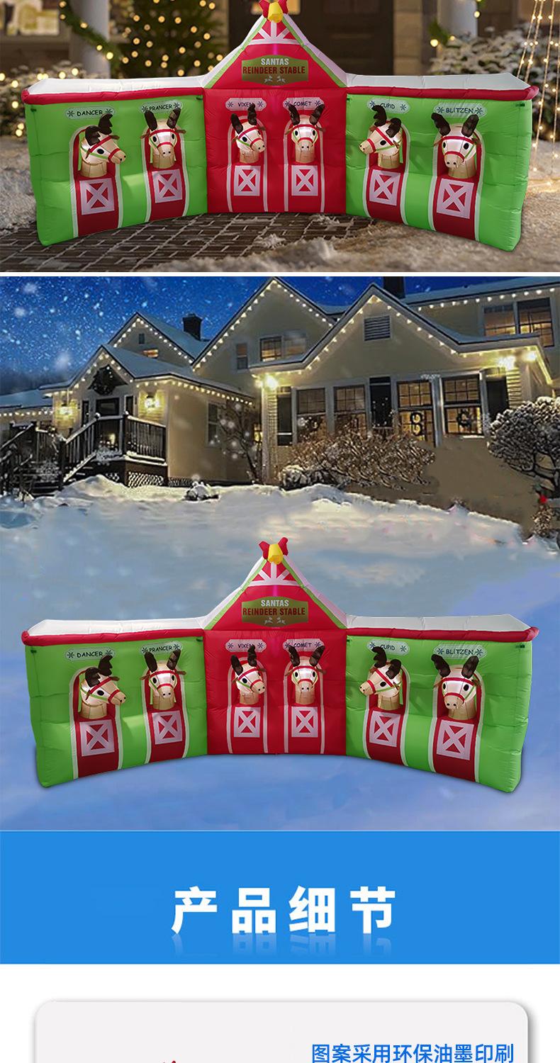 Modelo inflable navideño transfronterizo, castillo de Papá Noel y alce, decoración luminosa con ranuras para ciervos y luces LED para fiestas.