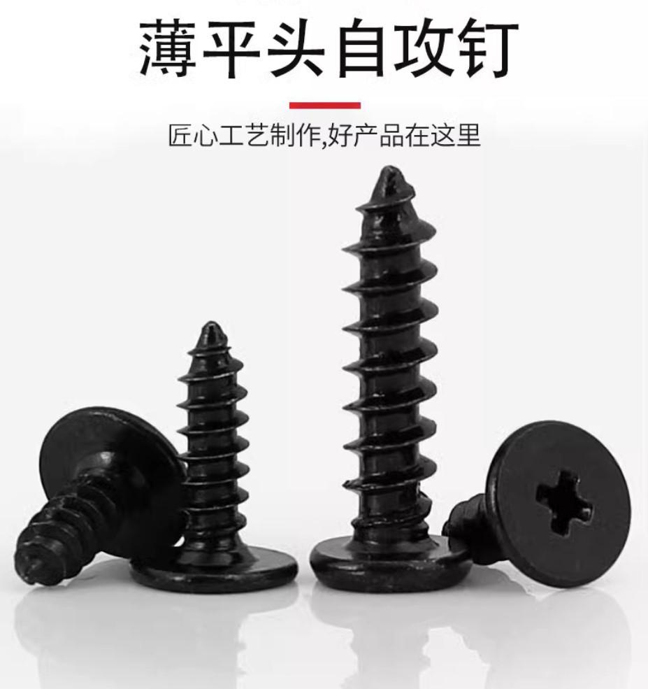 Tornillo autorroscante de cabeza plana y cruz de acero inoxidable 304 negro Tornillo autorroscante de cabeza plana y delgada CA Tornillo autorroscante de cola puntiaguda M2-M6