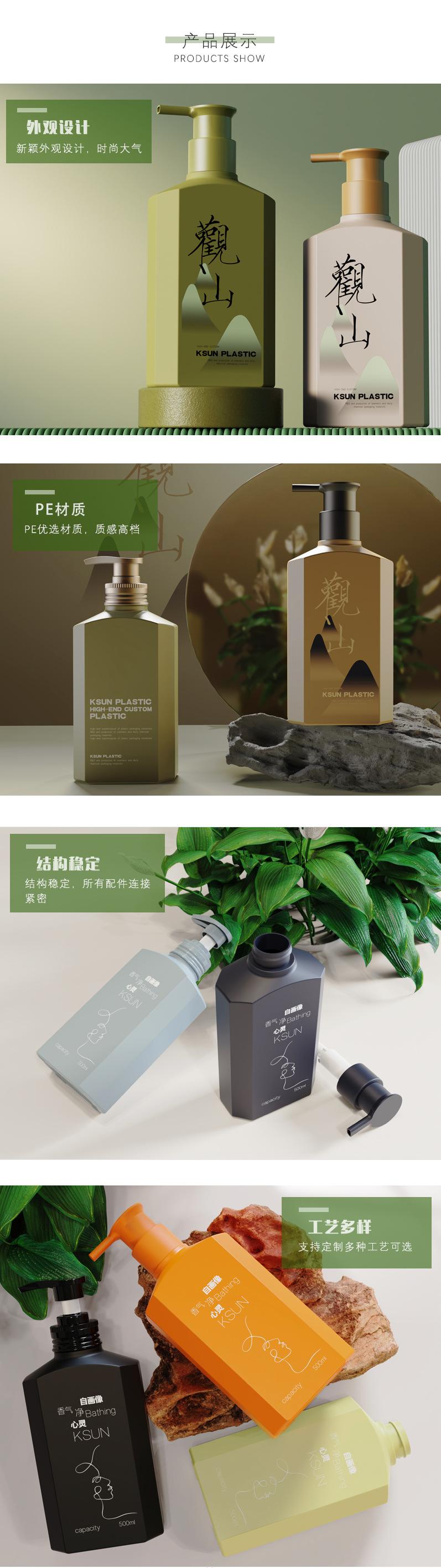 Fabricante Pe Botella de Plástico Tipo Presión Botella Cuadrada Plana para Champú 500ml Botella para Champú y Gel de Ducha Botella para Empaque de Cuidado